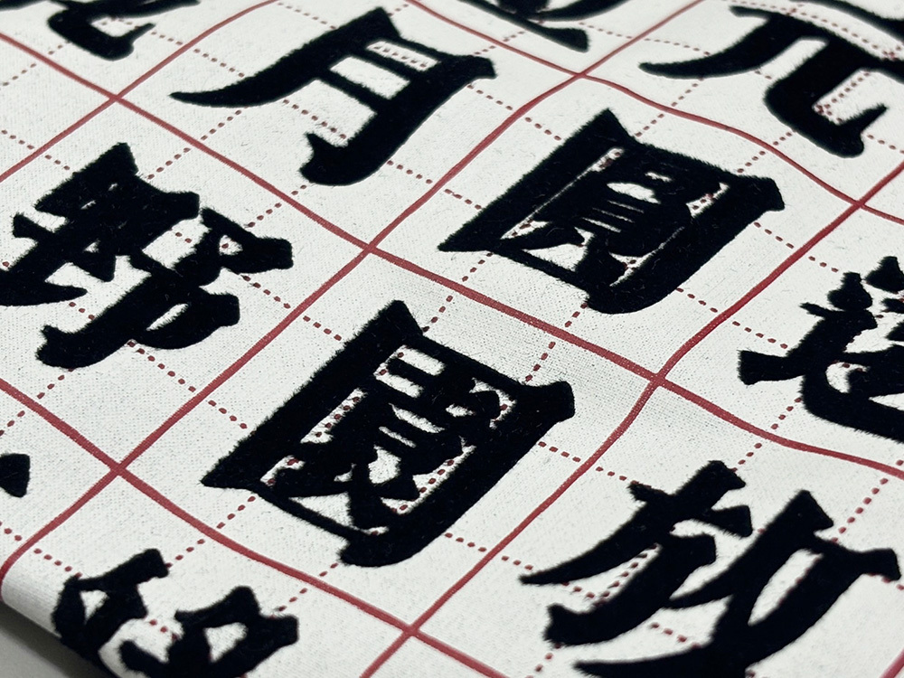 Screen printing with flock printing calligraphy fonts,