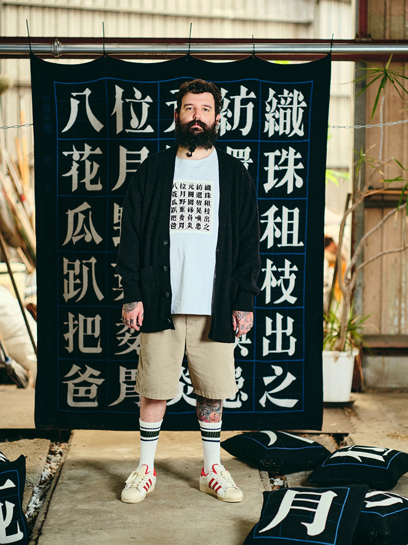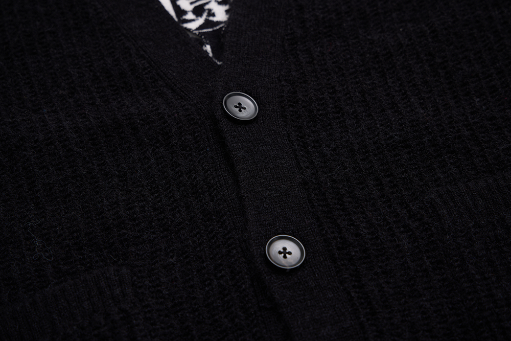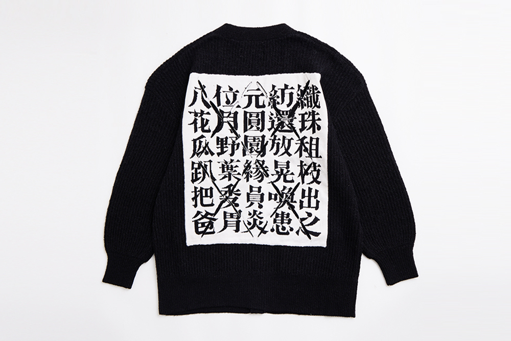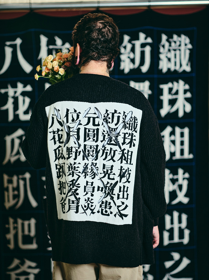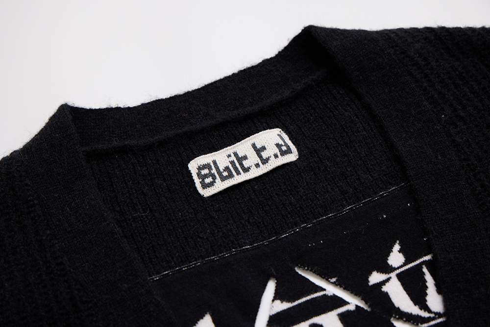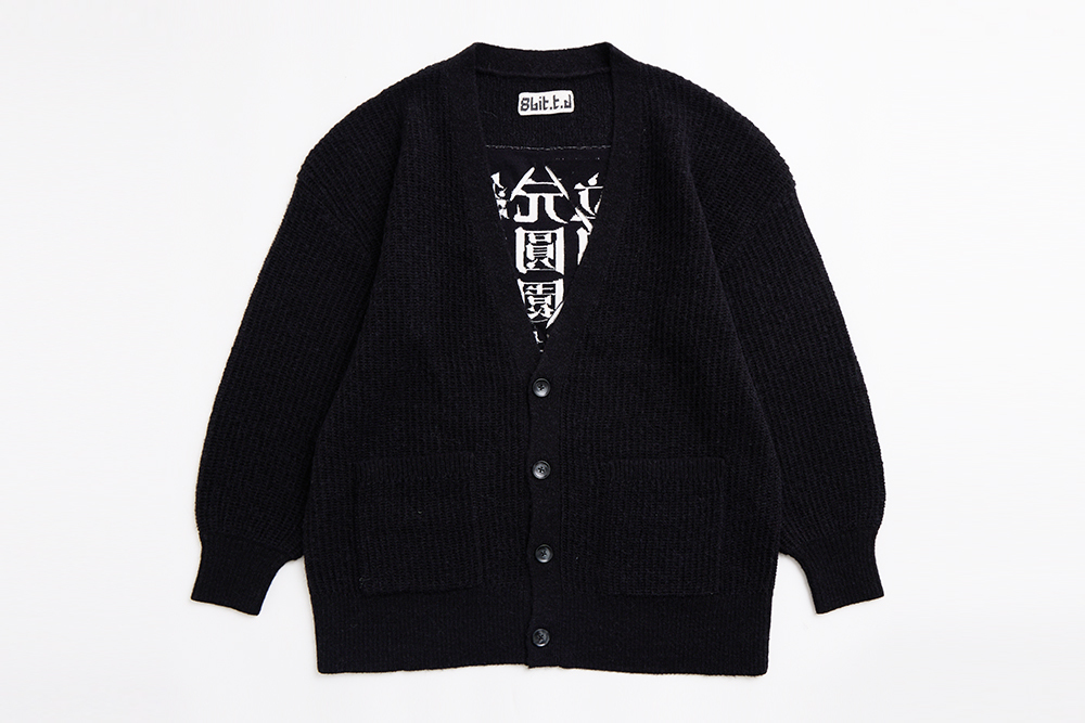 Cardigan with 8Bit.t.d. Calligraph pattern on the back.