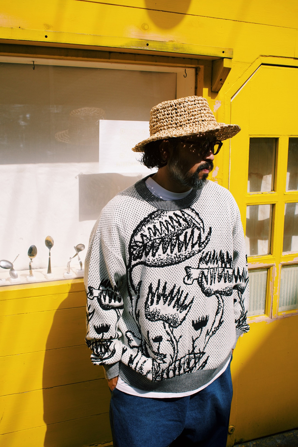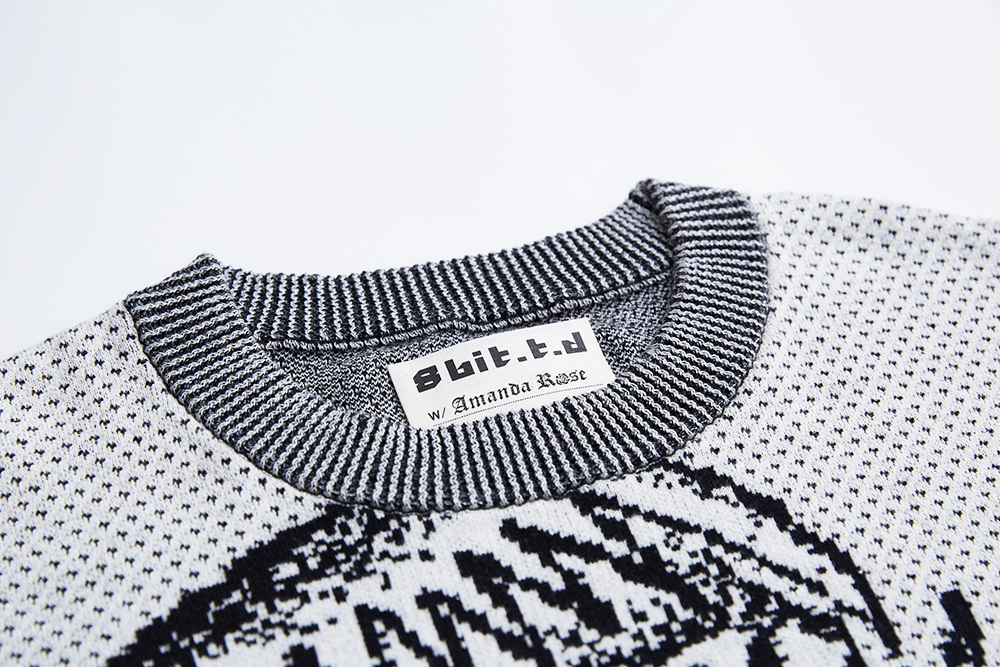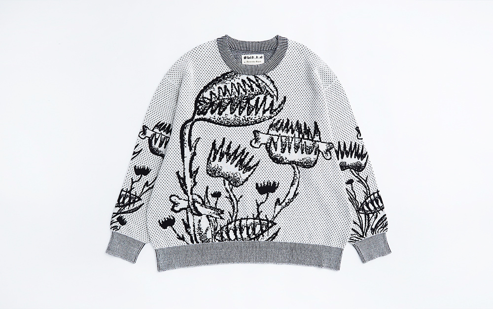 Dots texture pullover with Venus fly trap pattern.