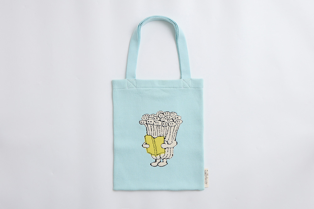 [Bird Pit] Reading Enoki Mushroom Tote Bag Sky Blue