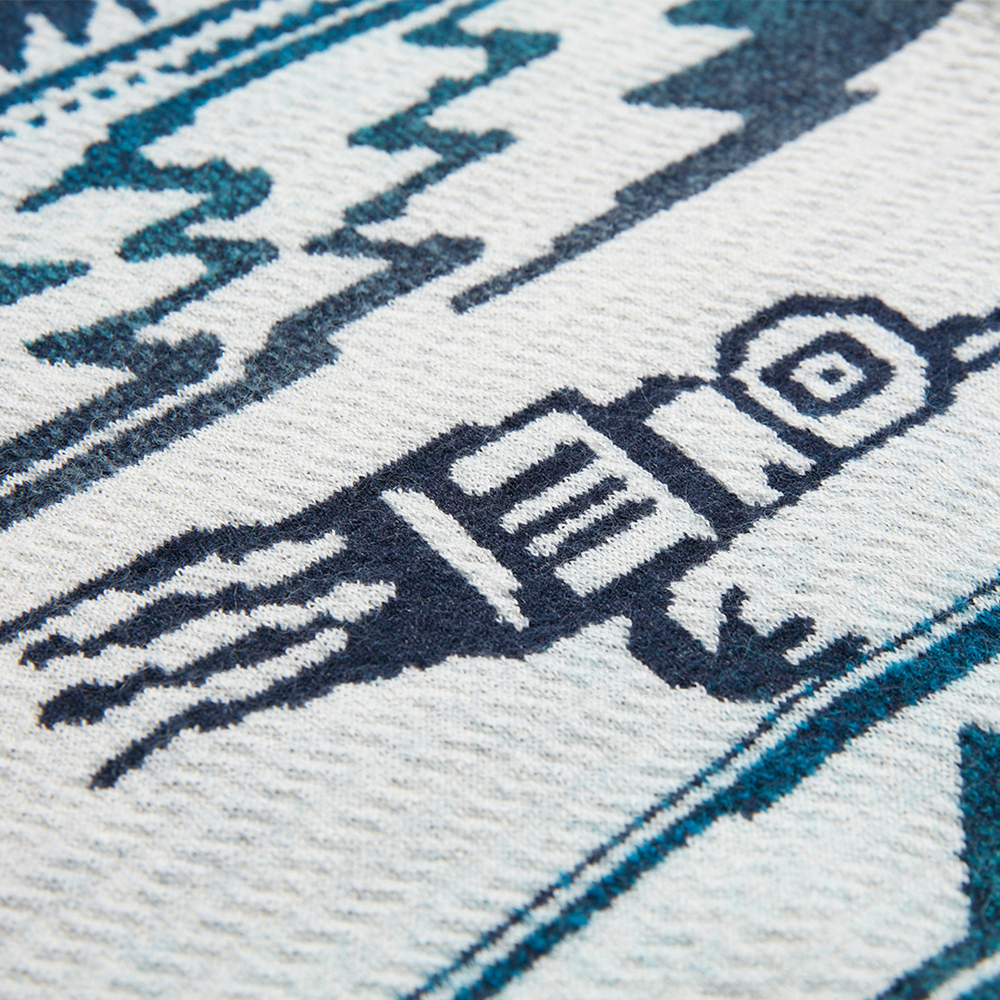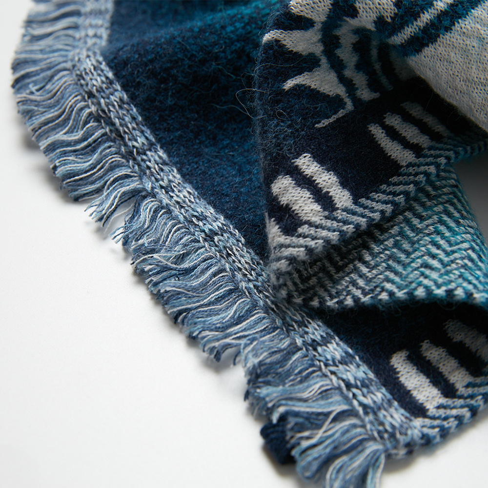 An knitted throw with soft hand-feeling, could be use as a blanket or hanging on the wall as a decoration.