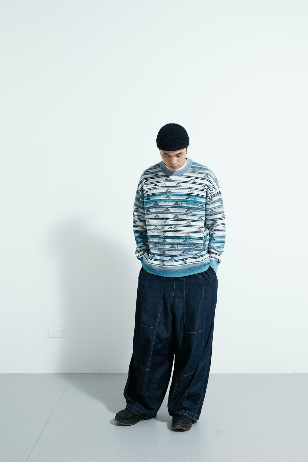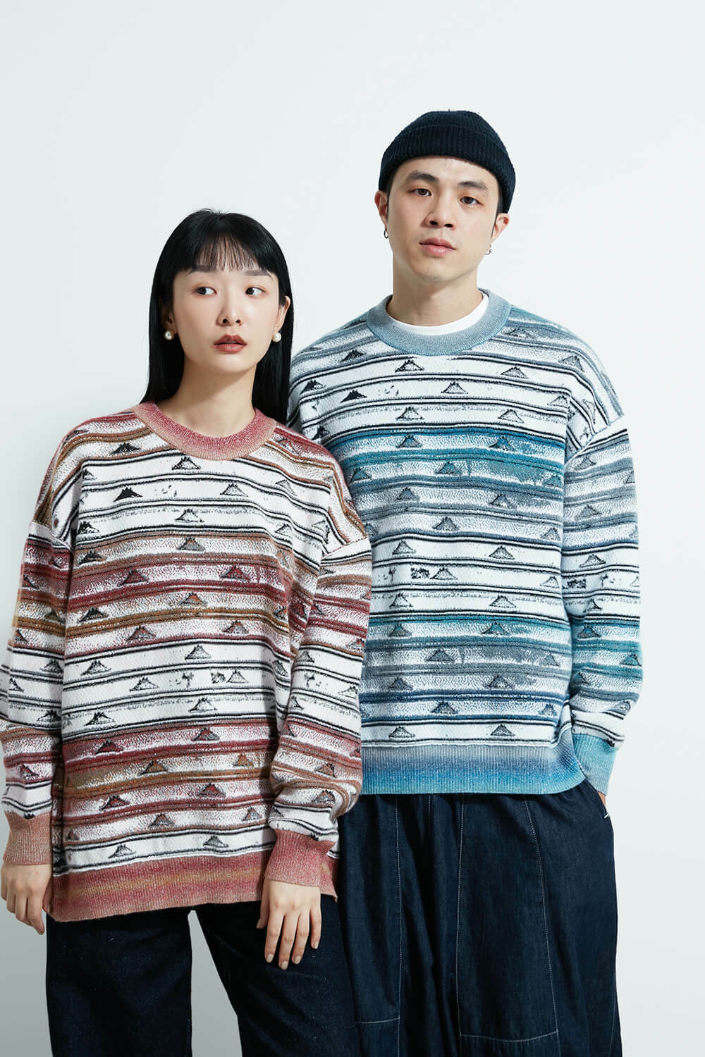 Merino wool blended top with Fuji mt. pattern.