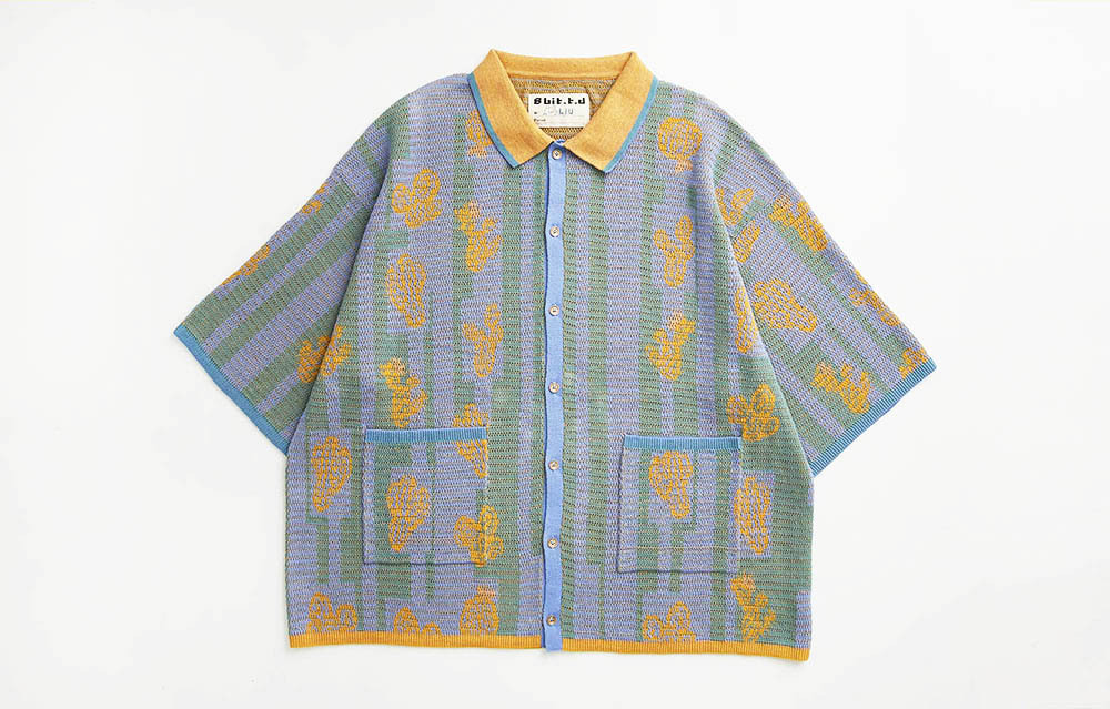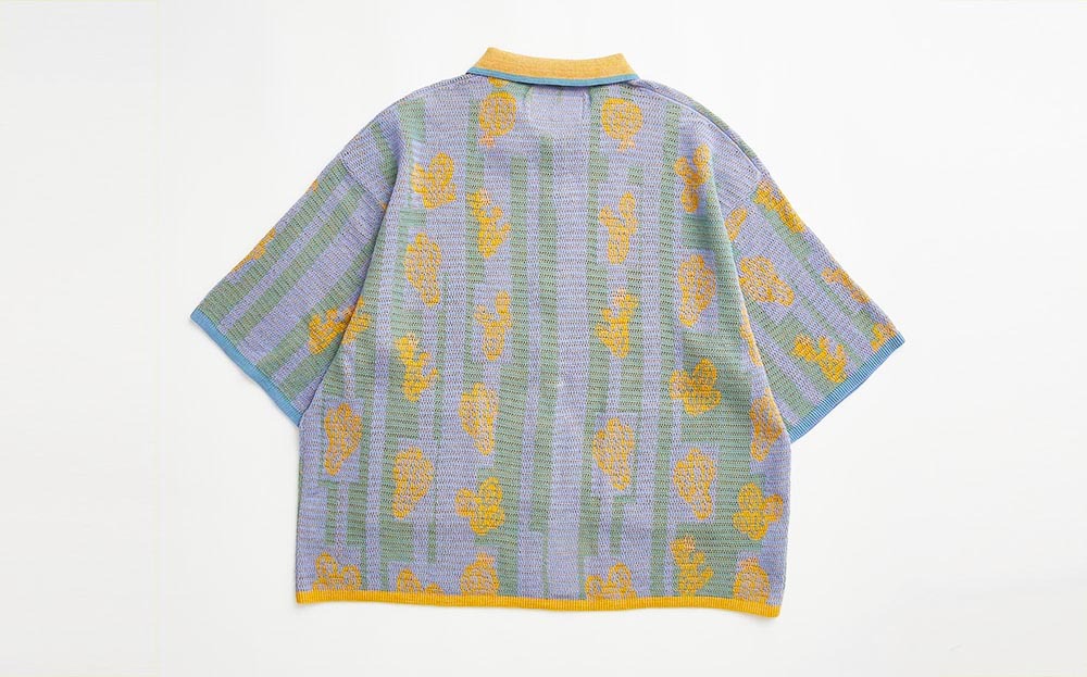 Breathable short-sleeves cardigan for spring summer with cactus pattern.