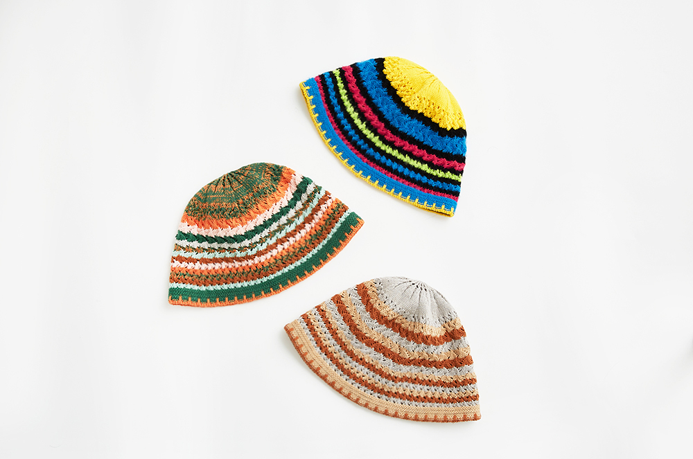 Knitted Bucket Hat with various colors combination.