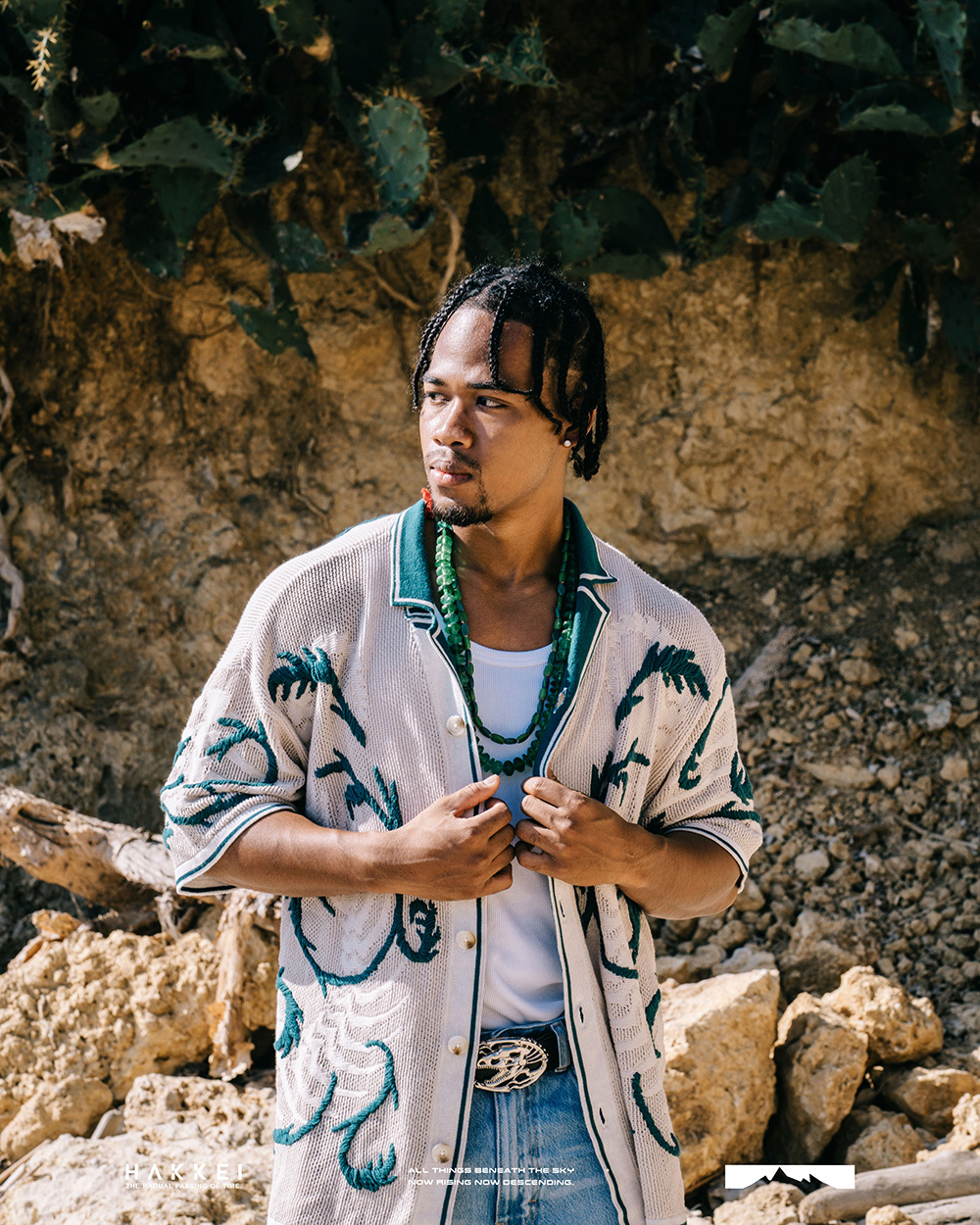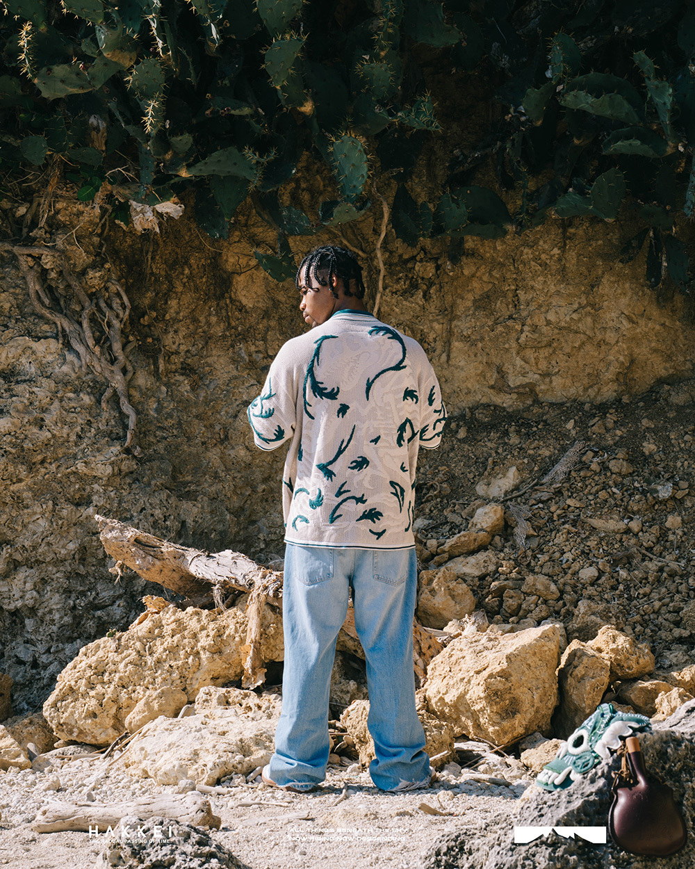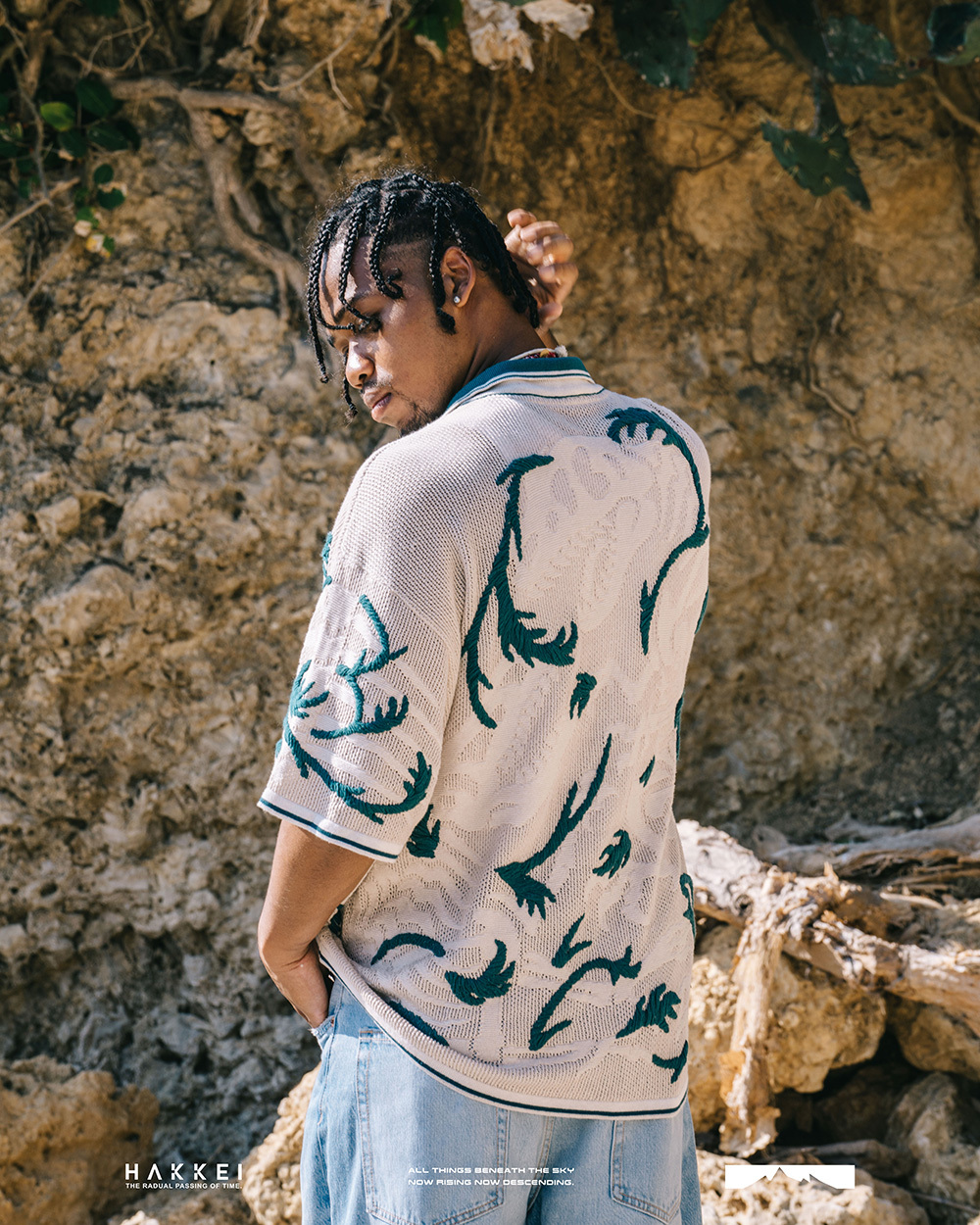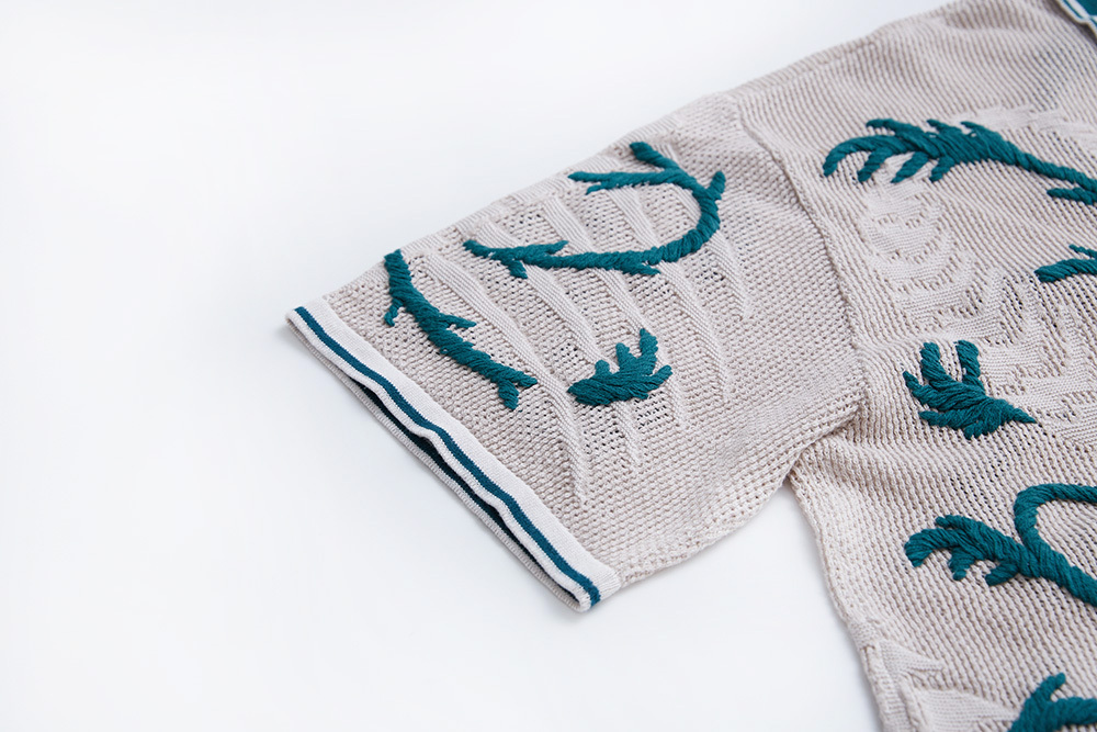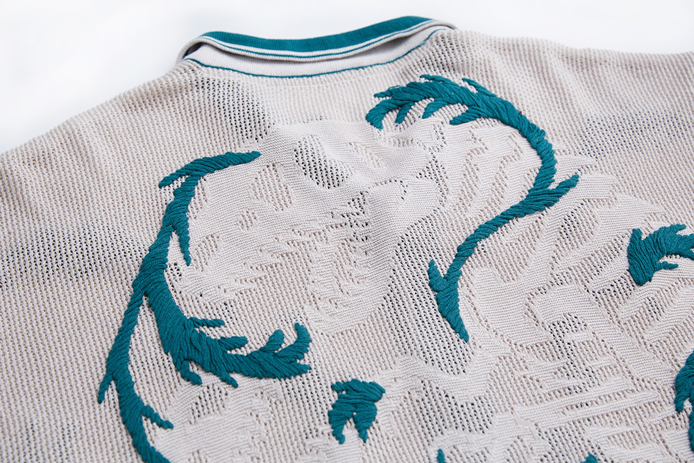 把爬滿藤草的化石形象,轉換成服裝設計的款式。