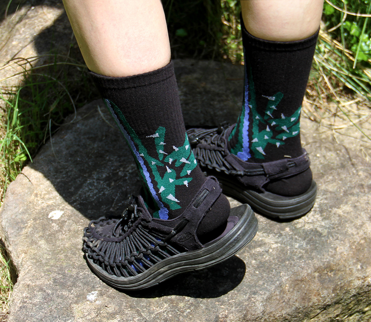 Making socks as their traveling diary, writing and drawing down the feeling of the places they have been.