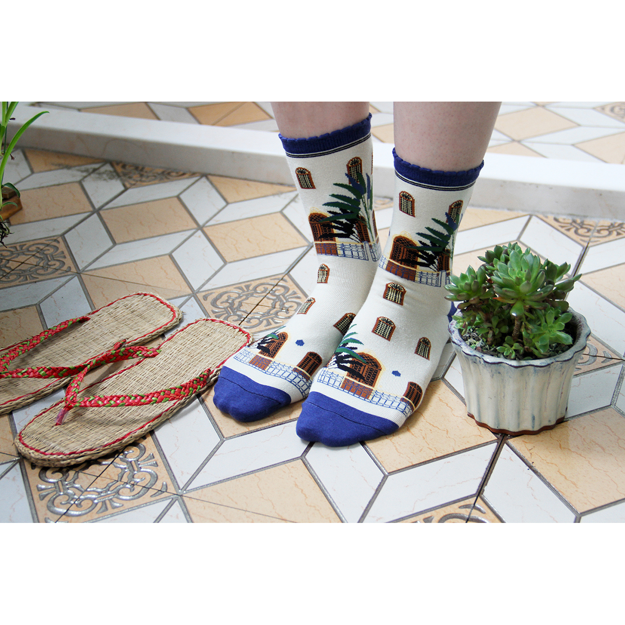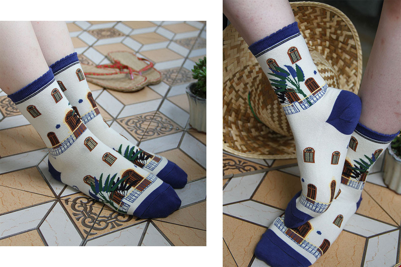Socks design of Empty Cones, inspired by travel.