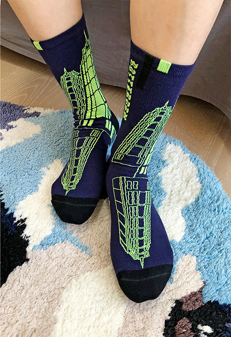 Socks design of Empty Cones, inspired by travel.