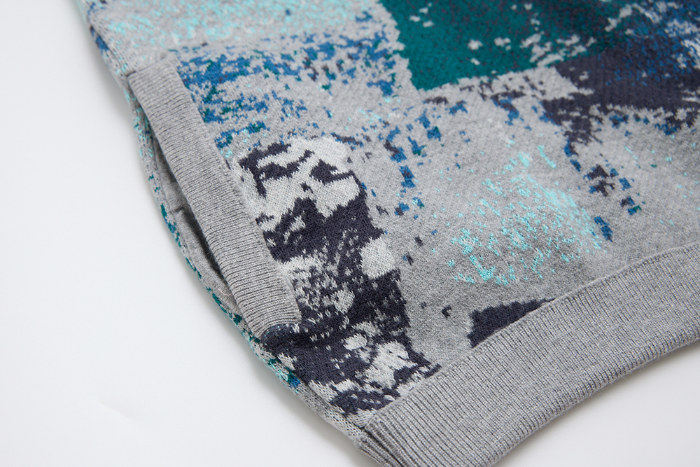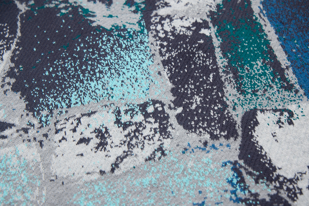 capturing the beauty of a chaotic stone landscape, transforming into a woven texture.