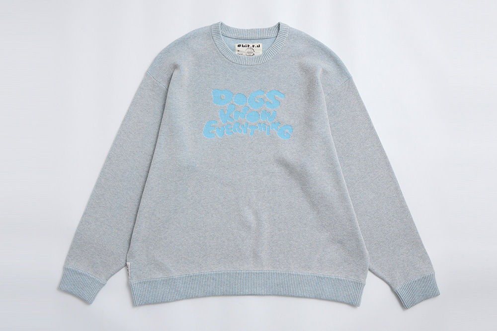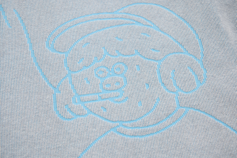 With a fresh and understated color palette, the piece uses textured knit lines to create an engraved-like effect that brings Megumi’s iconic dog character to life. A versatile and easy-to-style design.