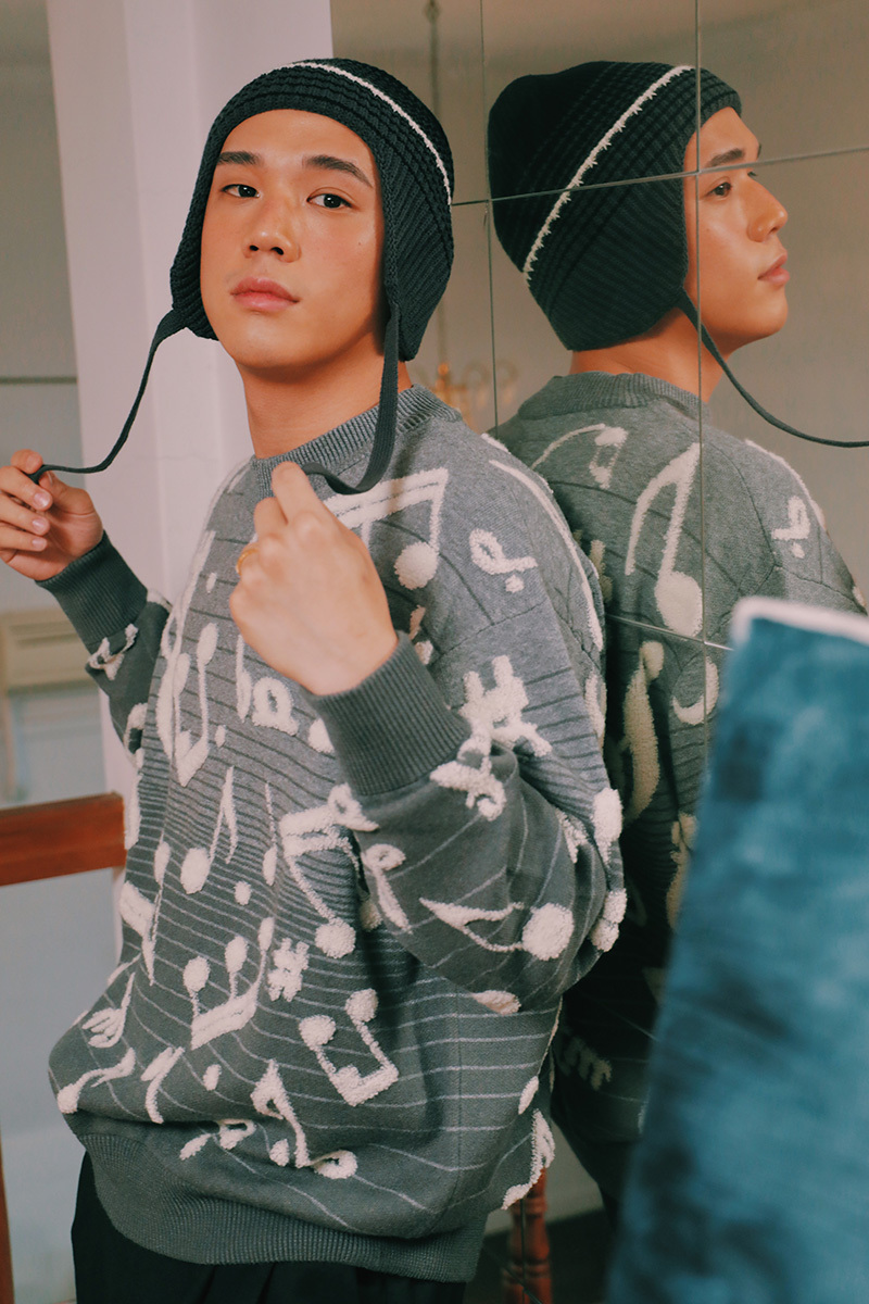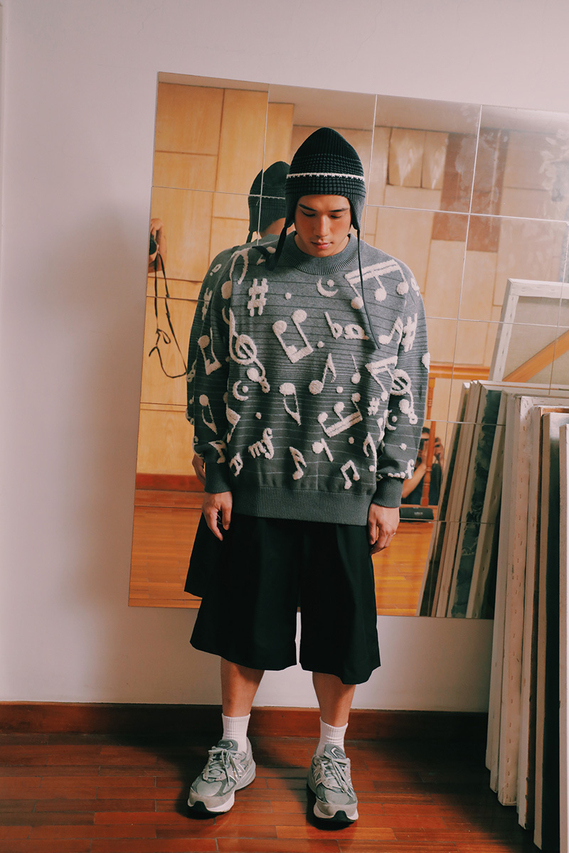 Transforming the classic Taiwanese karaoke sign into a musical-note knit pattern, paired with an easygoing, versatile silhouette and a subtle gradient effect.