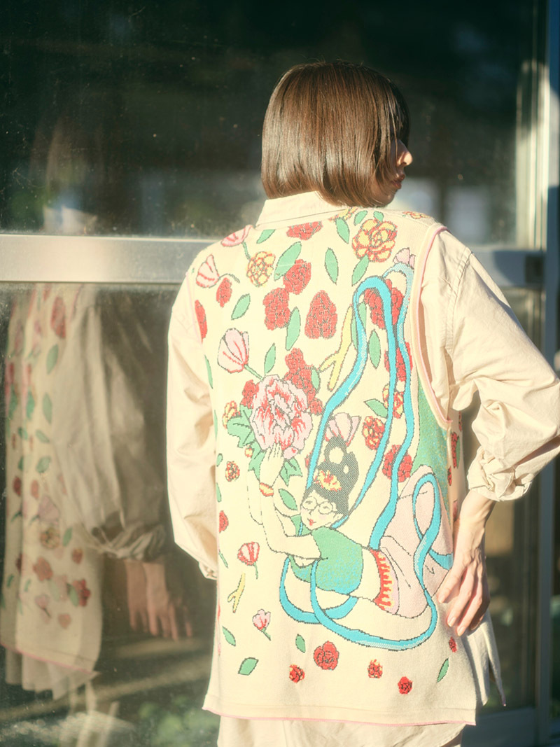 making her look as if she is out and about, scattering beautiful flowers to those around her.