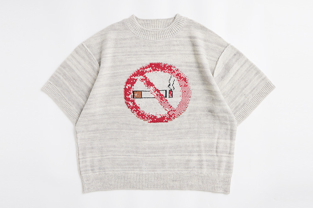 Non-Smoking Here Short-sleeves Knit Top Gray