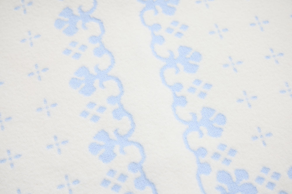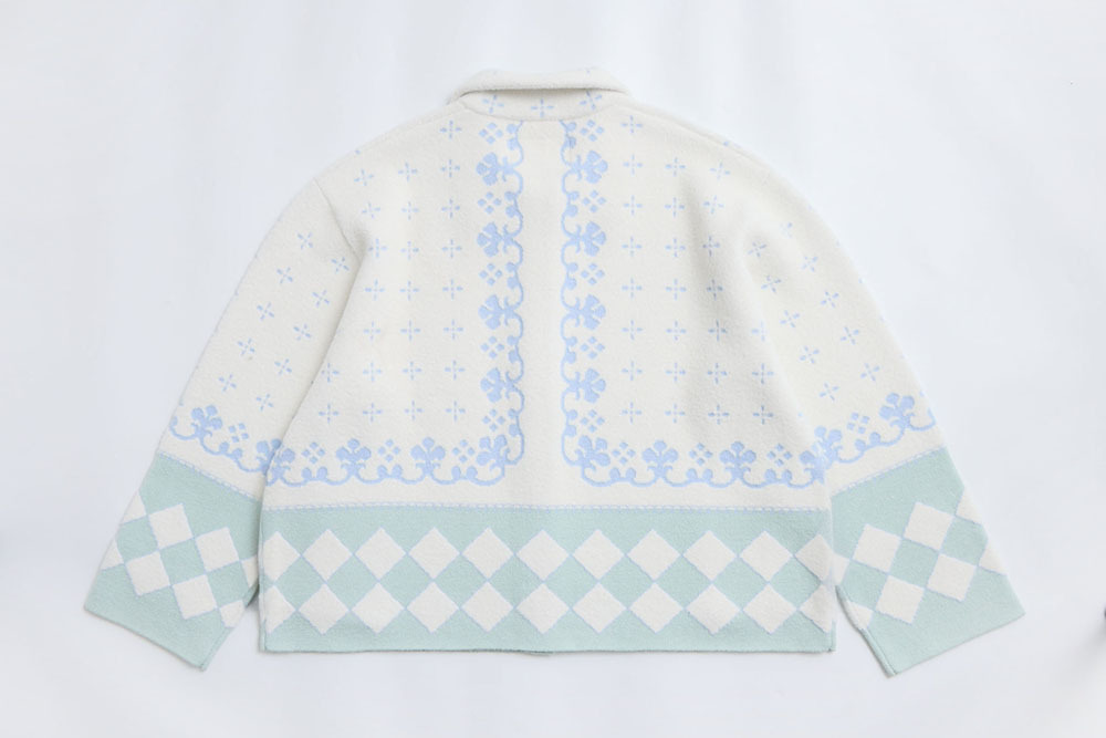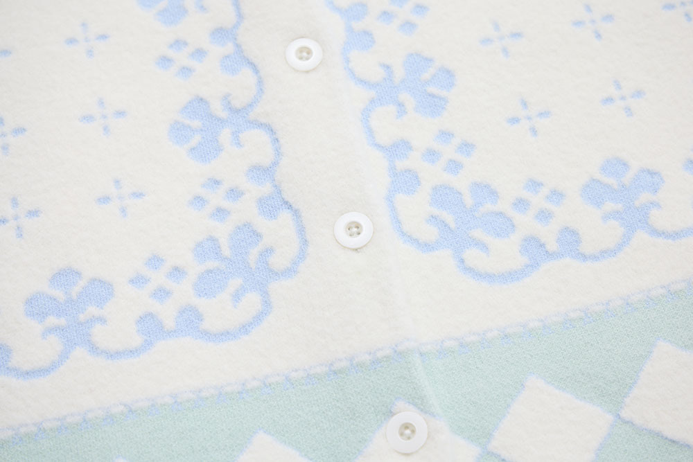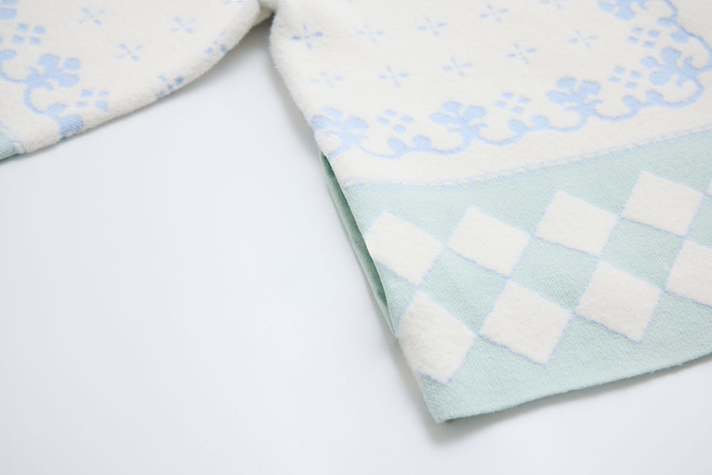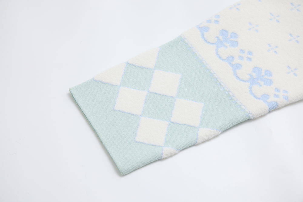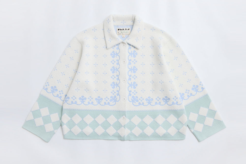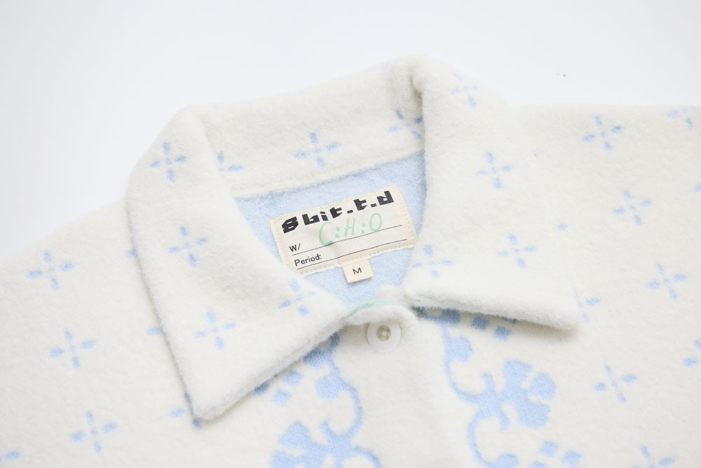 this piece is made with white fuzzy yarn, giving it a soft and clean overall look.