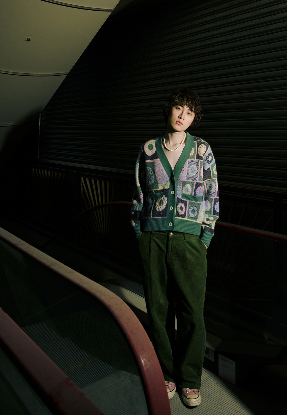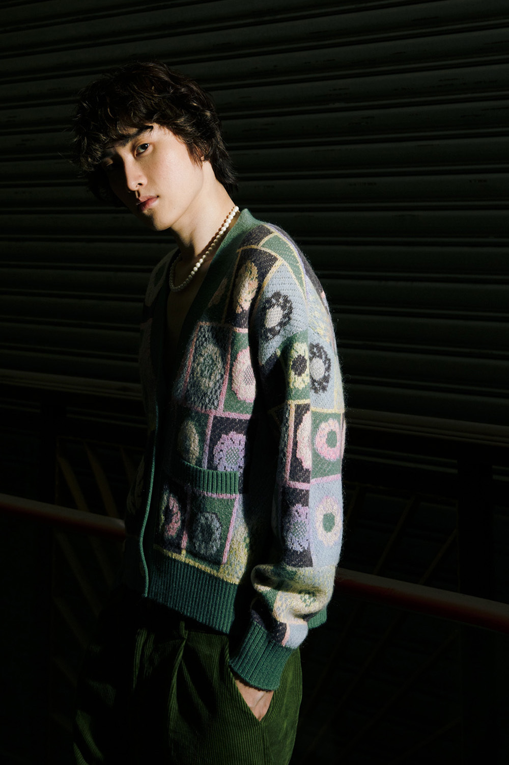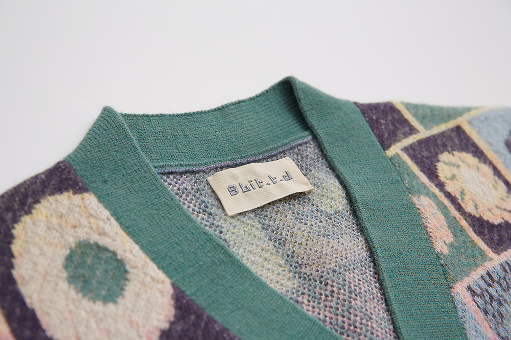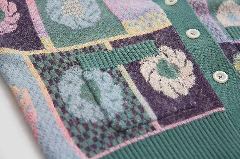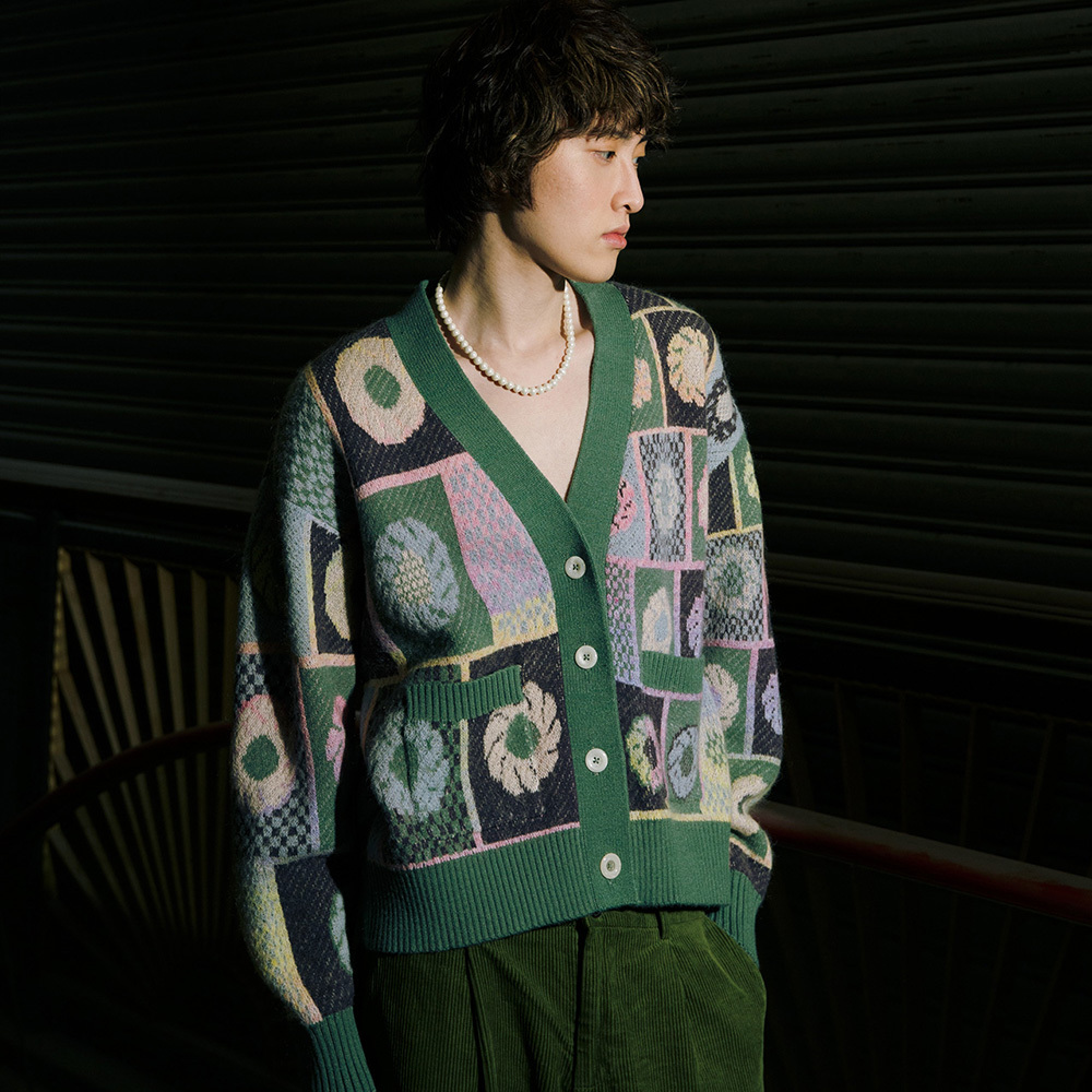 Soft knitted cardigan with Taiwan tiles pattern.