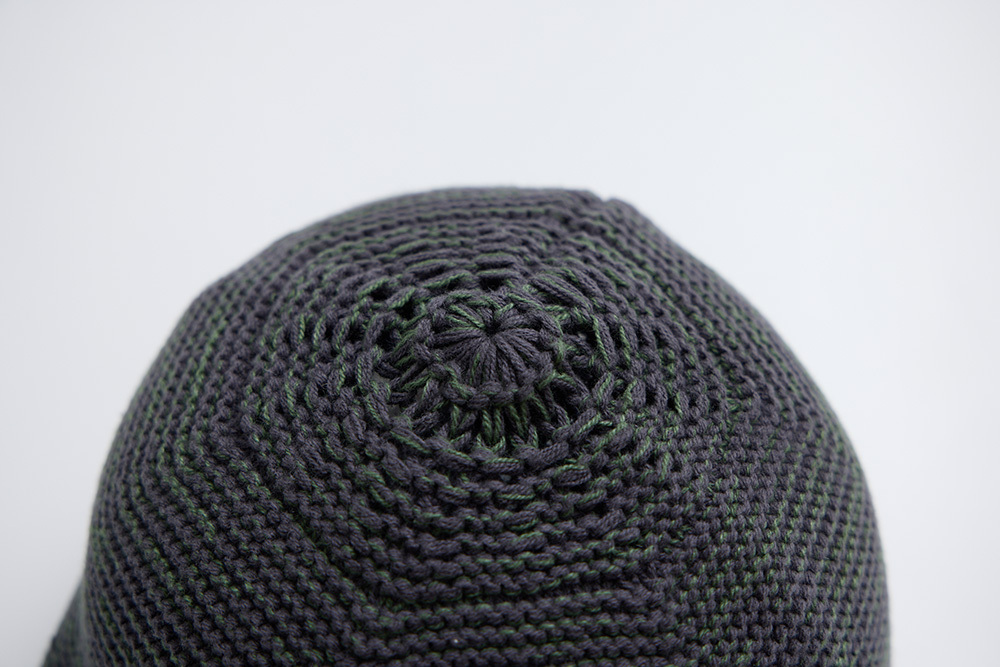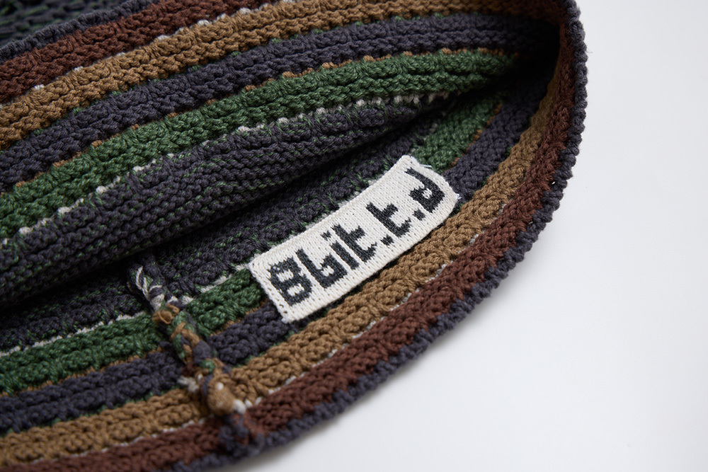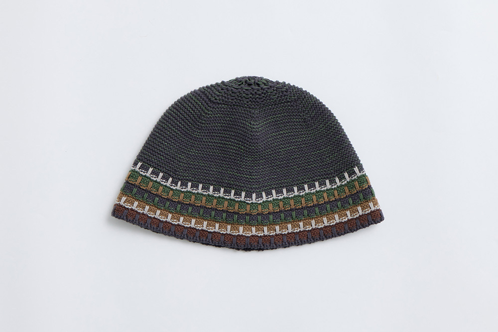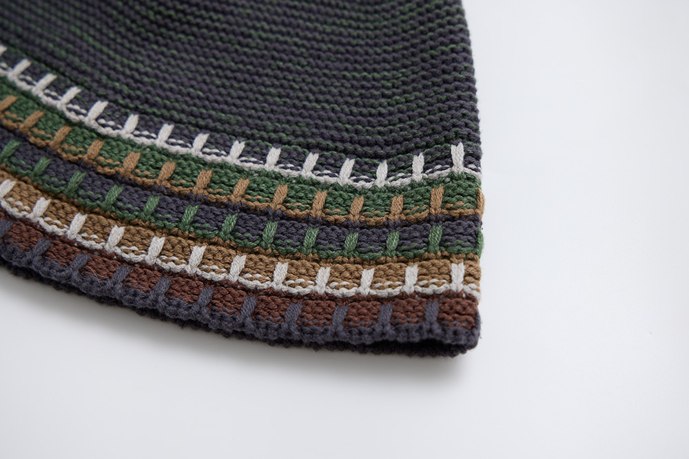 A knitted beanie inspired by the gradient tones of tree bark.