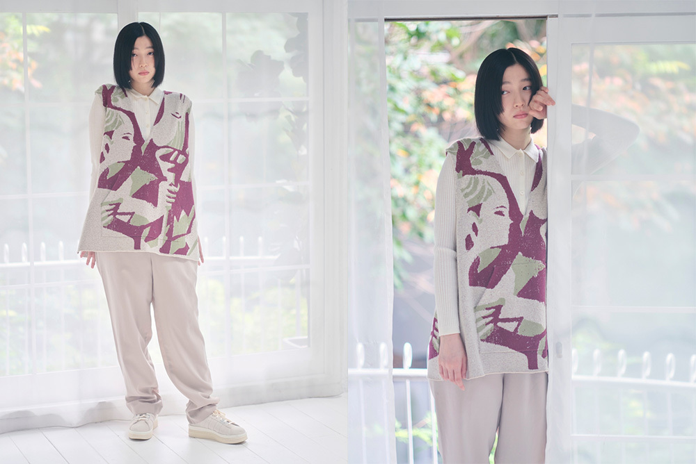 日本のイラストレーター永岡裕介さんとコラボしたカーディガン