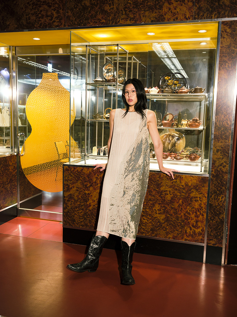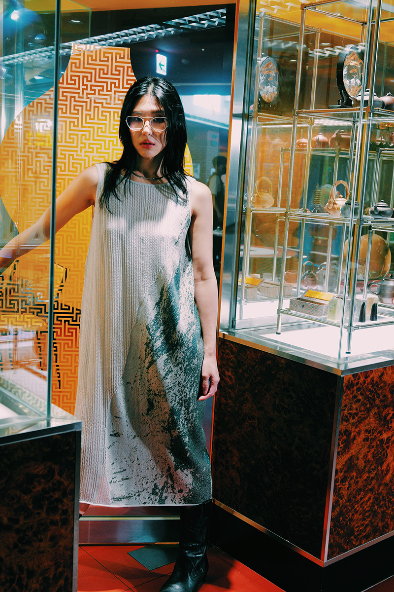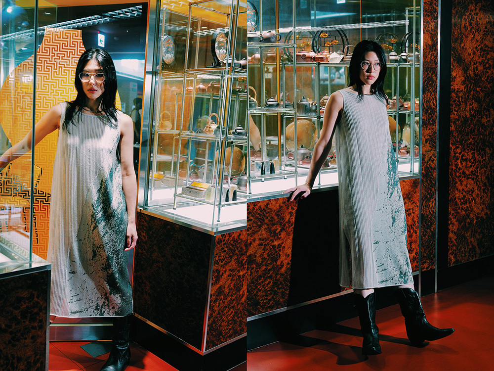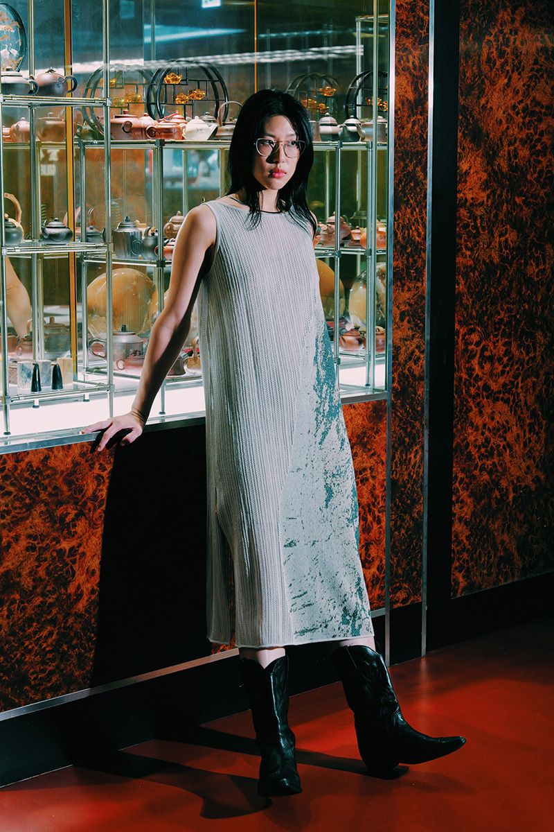 延伸進這件洋裝裡。