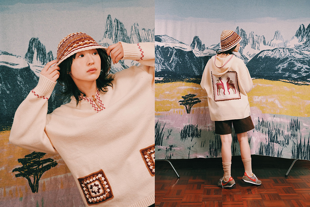 顏色與"馬它它馬 手鉤花邊連帽上衣" 作為顏色搭配配件。
