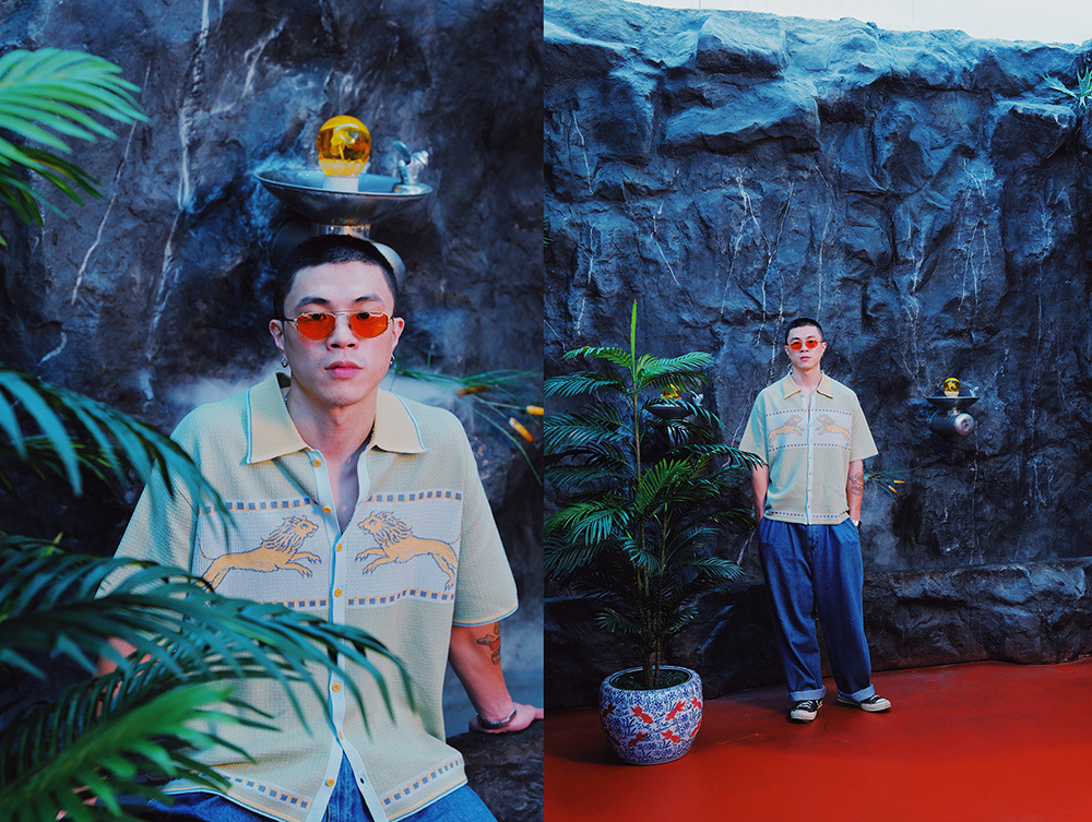 上下用仿小石頭排列把兩隻小獅子框住,讓小獅子更突出。