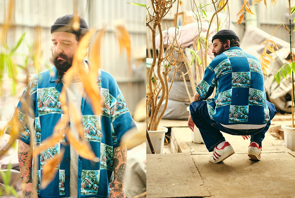就在一座水泥砌成的圓凳旁,我發現了一片罕見的磁磚——描繪著山中靜謐風景與小屋的圖案,