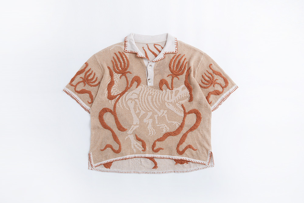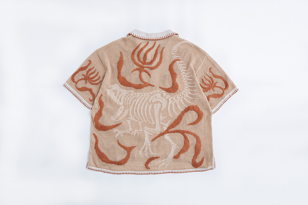 把爬滿藤草的化石形象,轉換成服裝設計的款式。