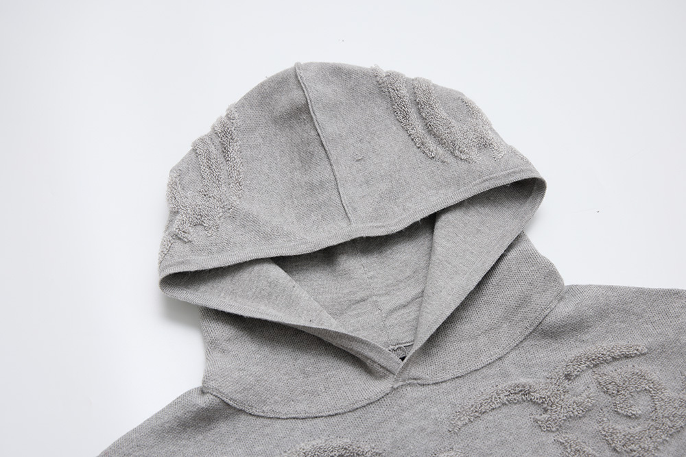 與藝術家D.3.C合作,製作出以骨骼為主角,用毛圈組織展現強調出織物立體感。