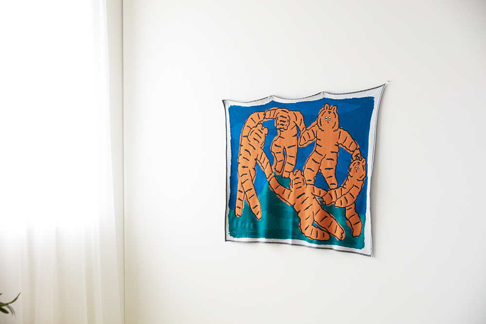 與小虎DAY共同創作的跳舞小虎織毯