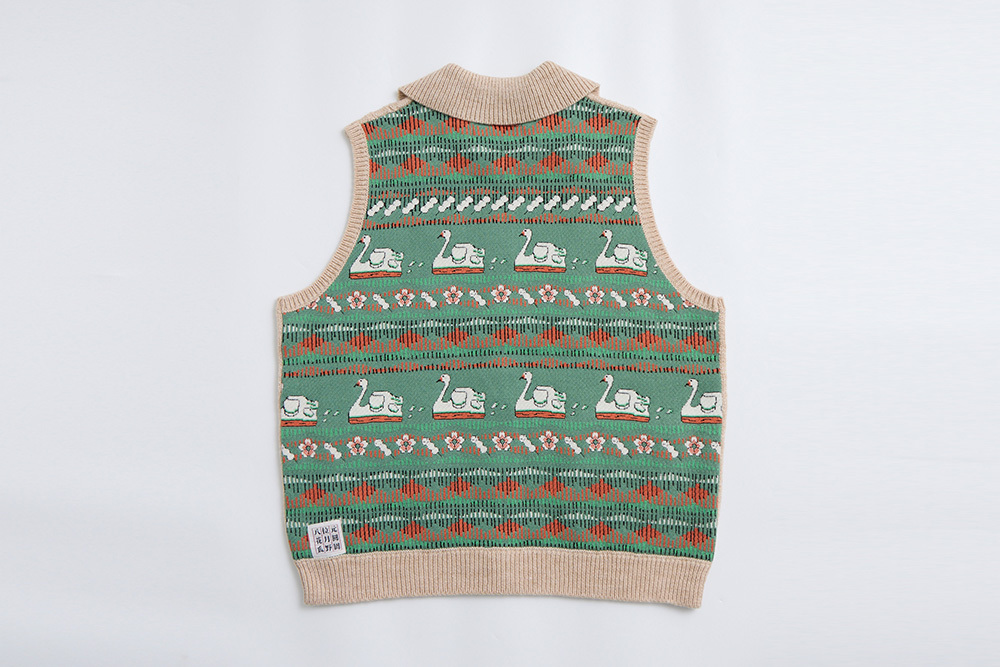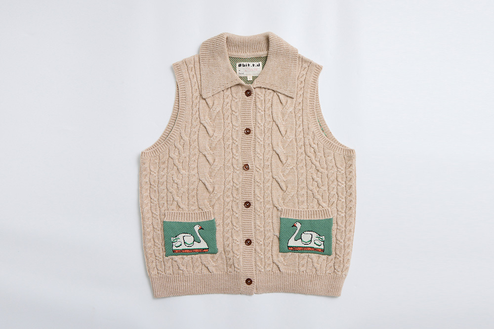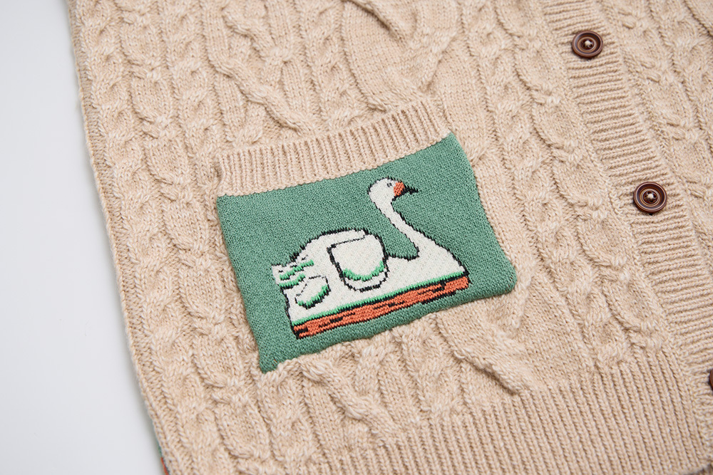 左右兩邊各貼上有著天鵝船圖案的口袋點綴;