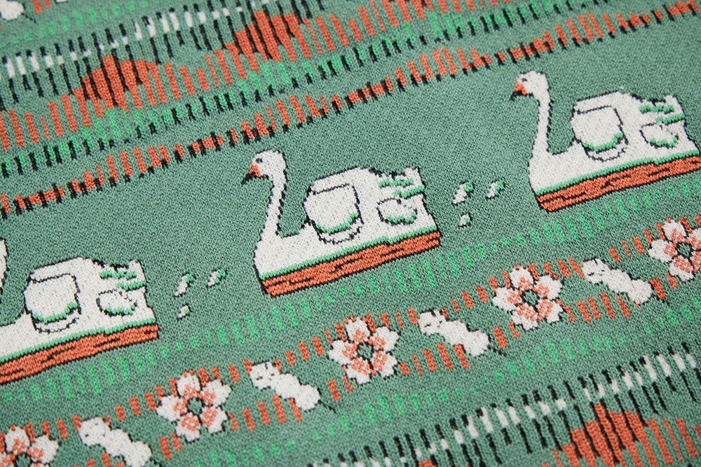 背面以天鵝船、櫻花、糰子的圖案做排列交錯設計。
