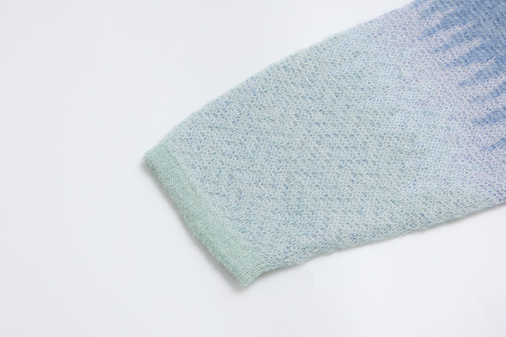 使用馬海羊毛製作出輕薄柔軟的質感,搭配領口綁帶,寬鬆的版型營造出與薰衣草一起隨風擺盪的慵懶氛圍。