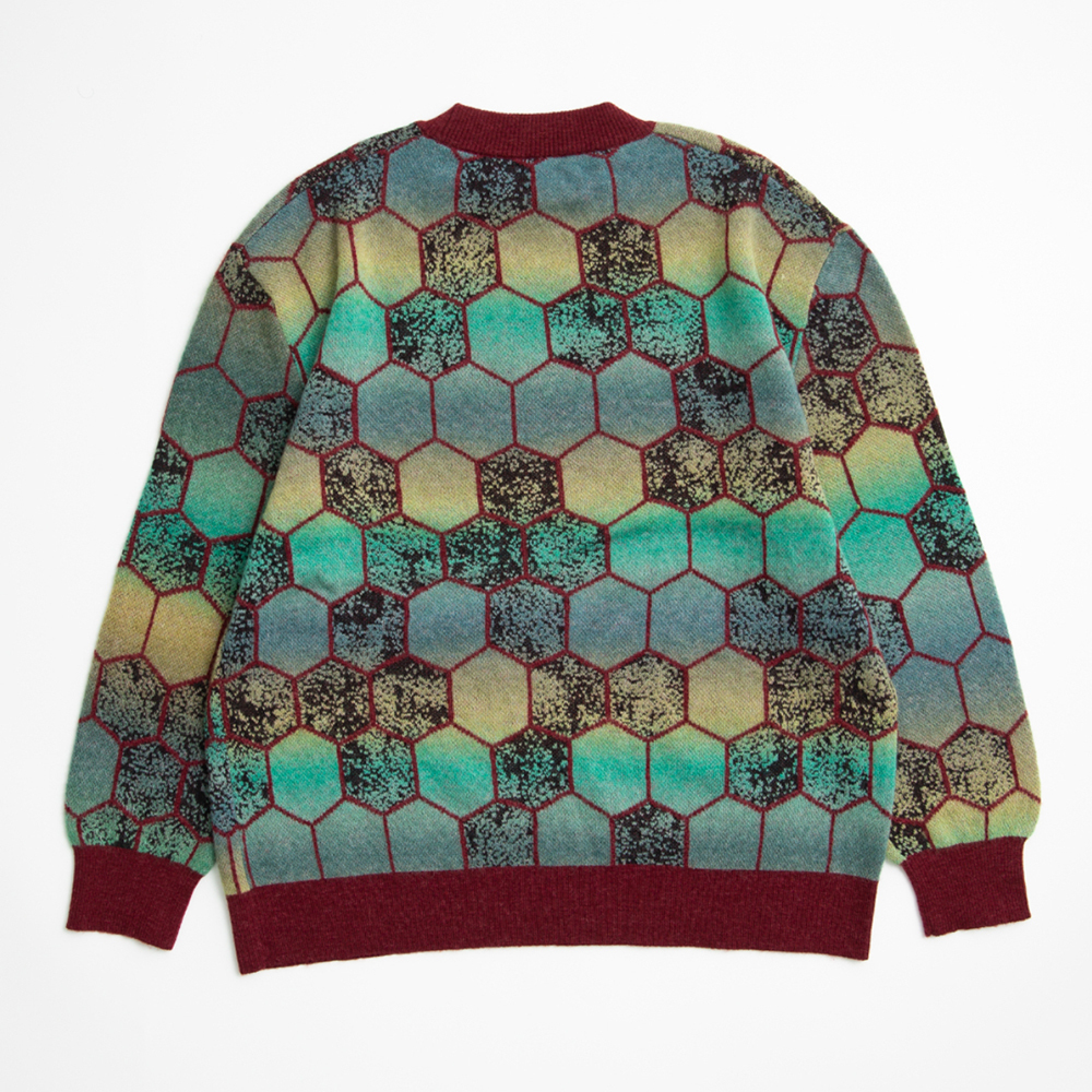 有神明廳斑駁的六角磚圖案的軟軟羊毛混紡長袖上衣