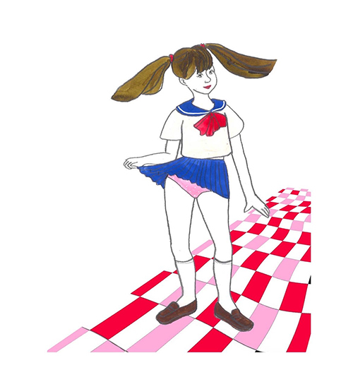 時不時掀起水手服短裙,積極向持攝影機的人炫耀她們新買的蕾絲內褲,就這樣重複了20分鐘。