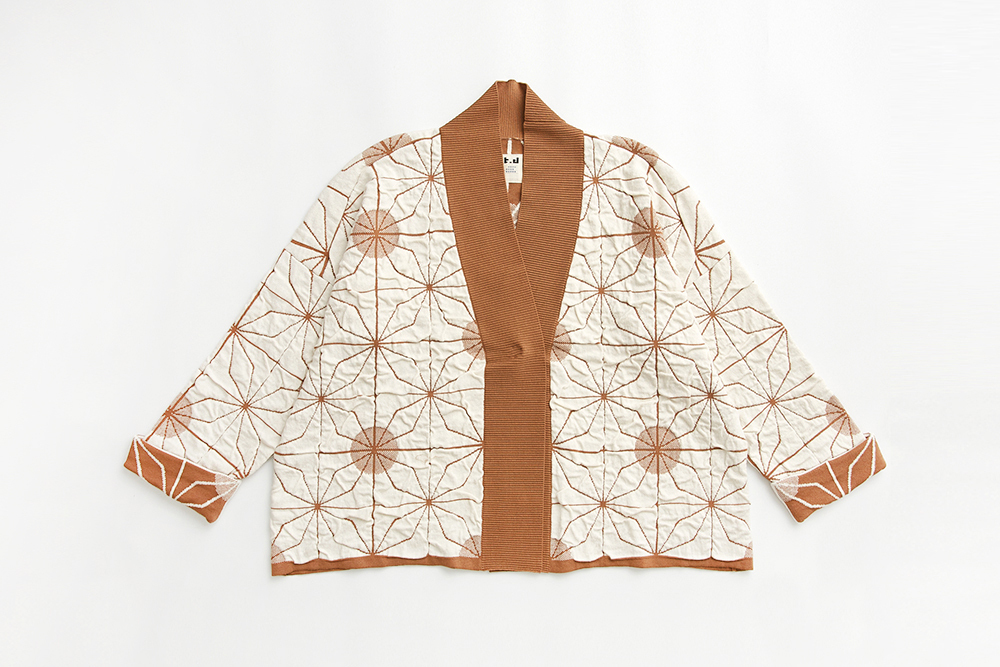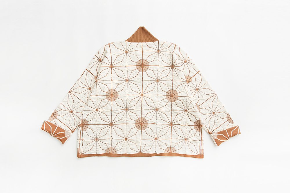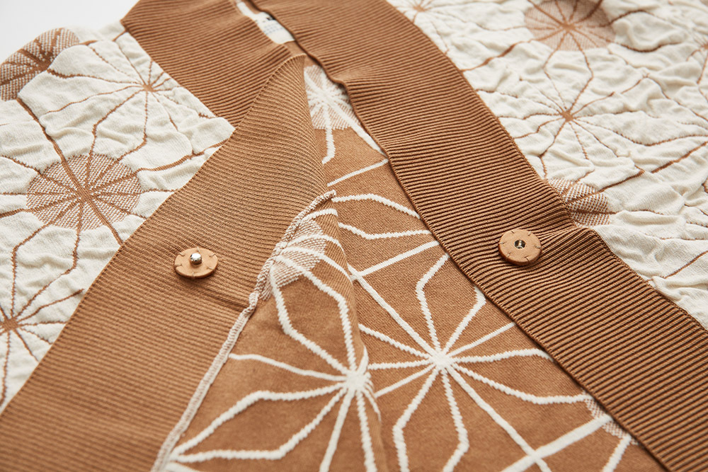 和式版型及皺皺織紋效果的鐵窗花圖案外套