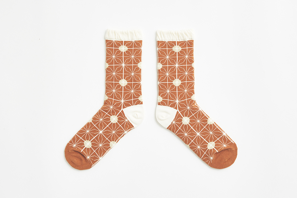 皺皺織紋效果的鐵窗花圖案中筒襪