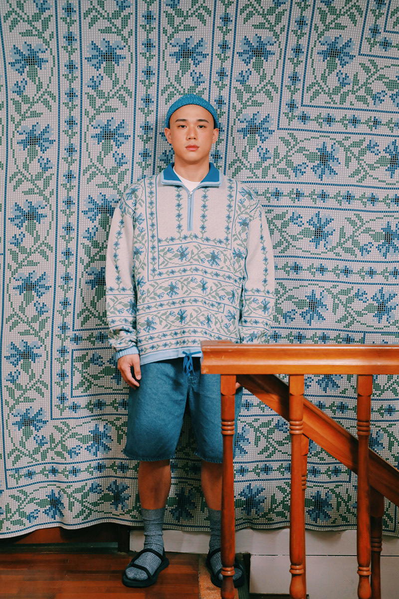 以八位元低像素的格點效果的織紋呈現宛如瓷磚的意象。