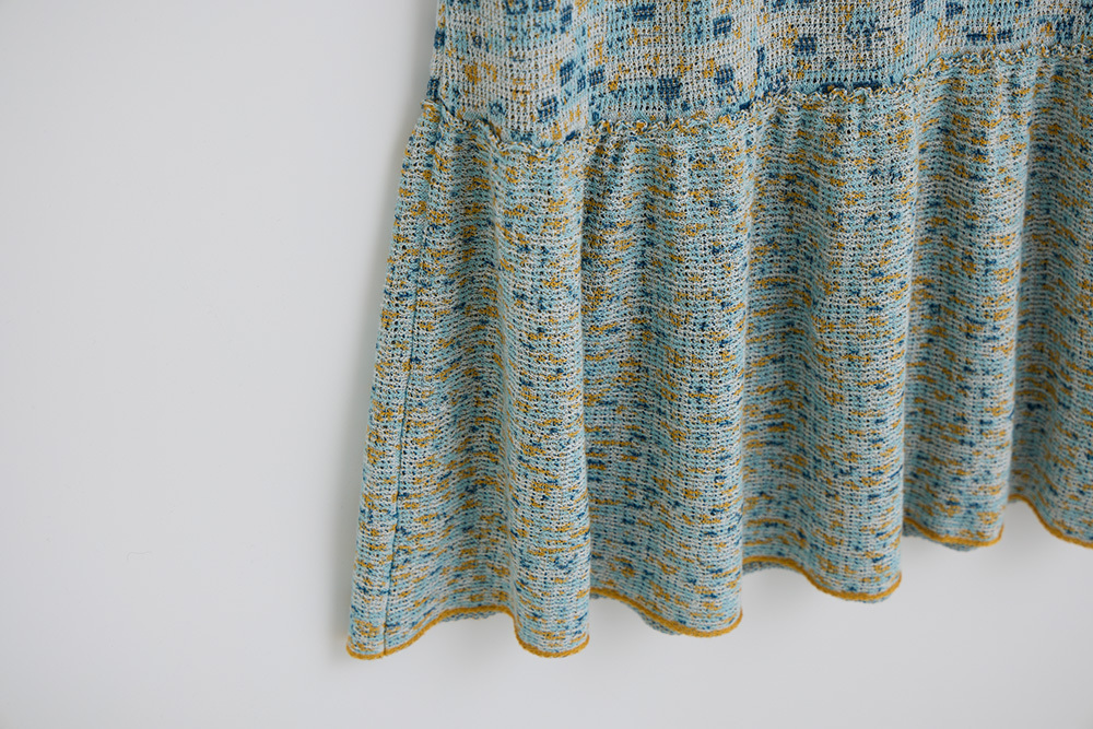 下擺另接抽皺荷葉邊做出層次感。