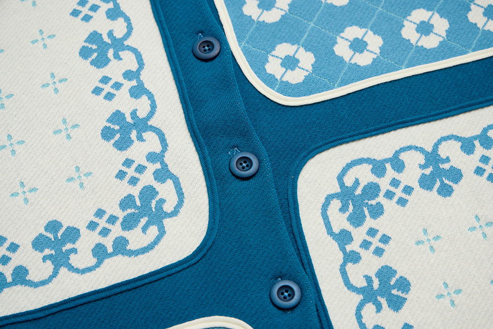 靈感來自阿根廷街頭看到的花磚,每一格圖樣就像從牆面剪下來貼在身上。