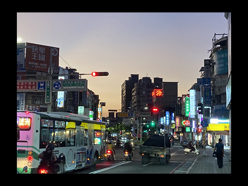 2022.10.02 18:07餘暉漸沒,街燈車燈霓虹燈,招牌叢林水泥牆。