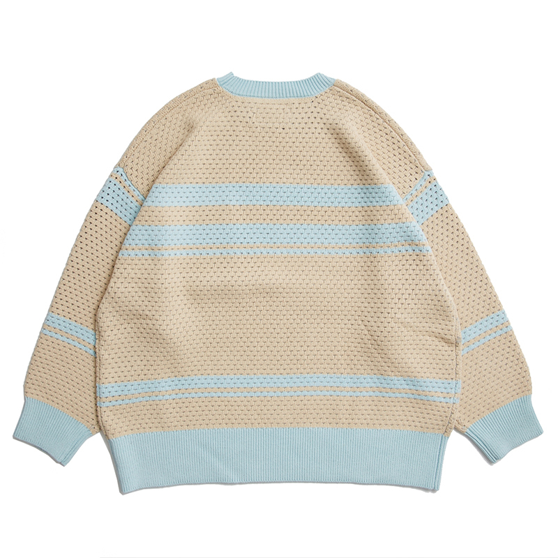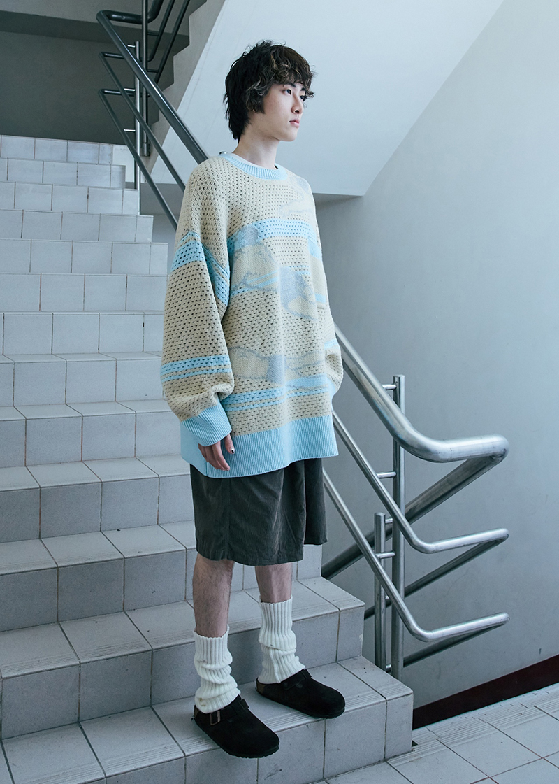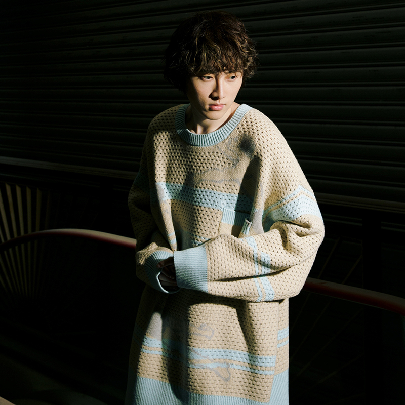 以游泳為主題的oversize針織衫,挑孔設計增添運動感,