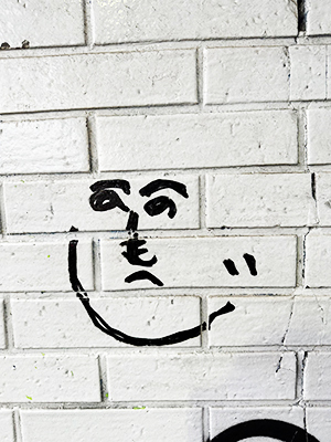 在高円寺生活三個月後,即將離開的某一天發現那個磚牆上的顏文字塗鴉已經被白色油漆覆蓋住。