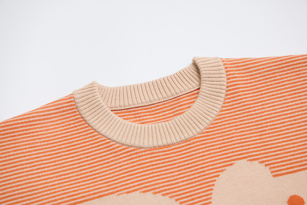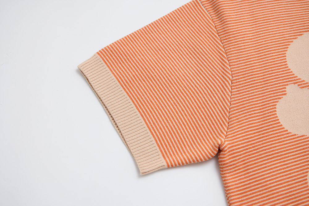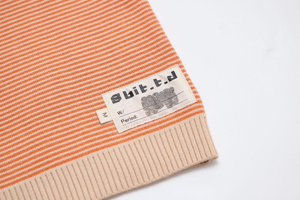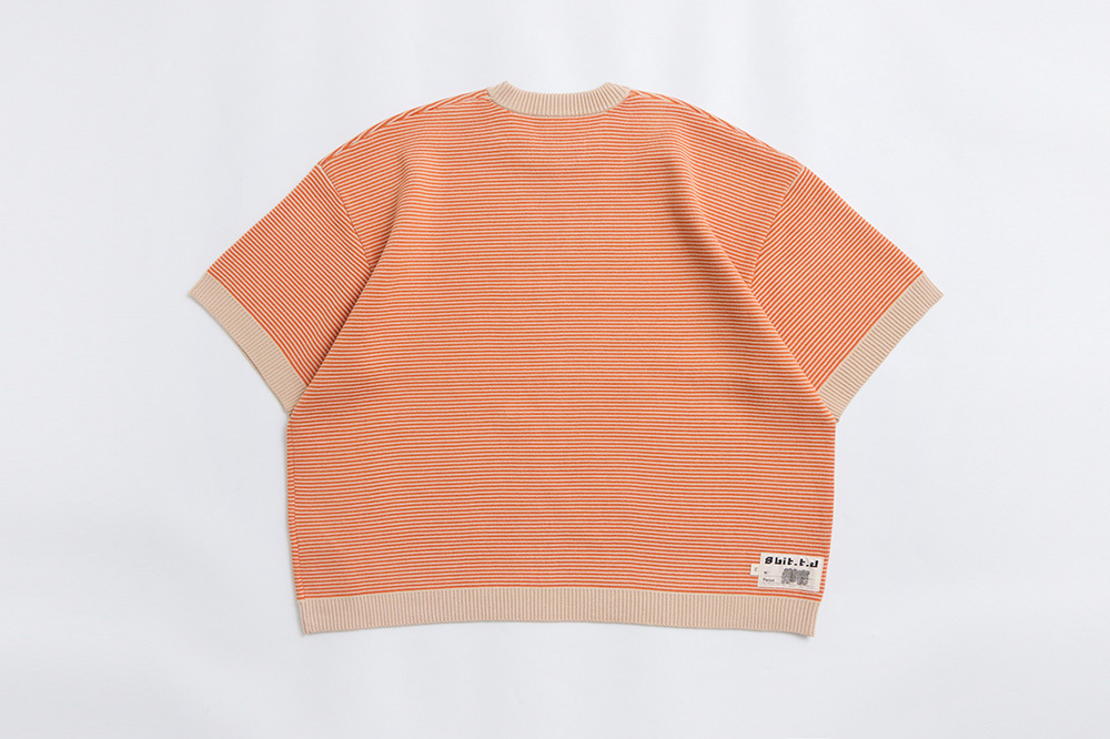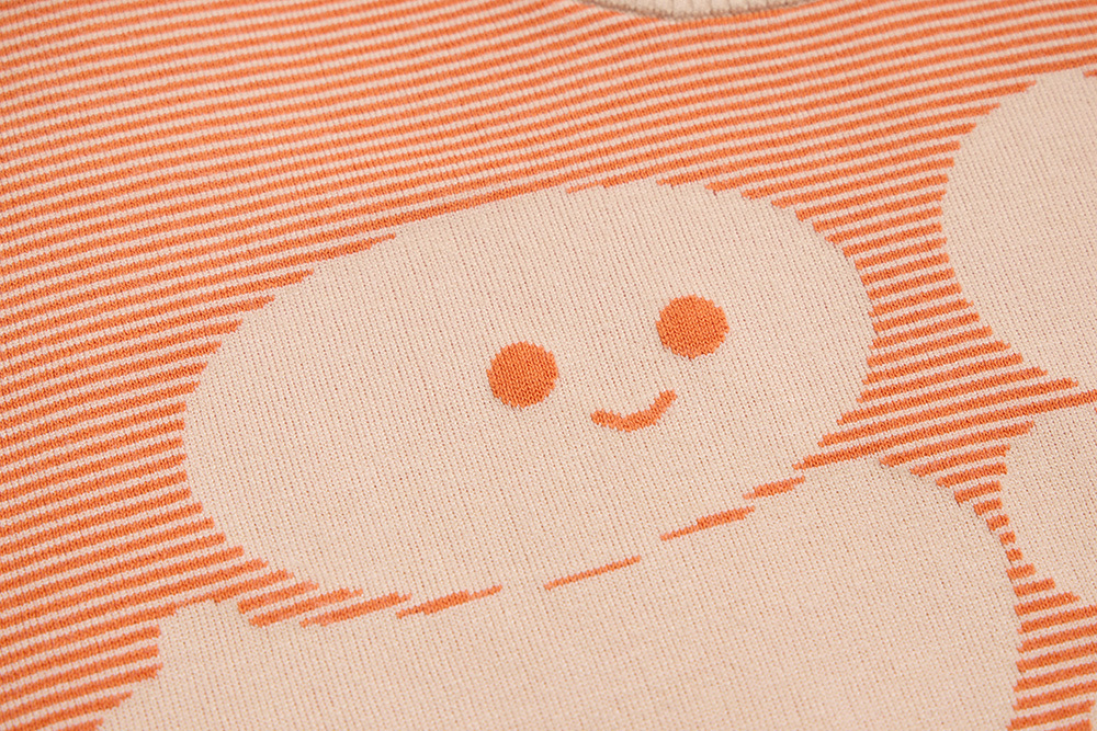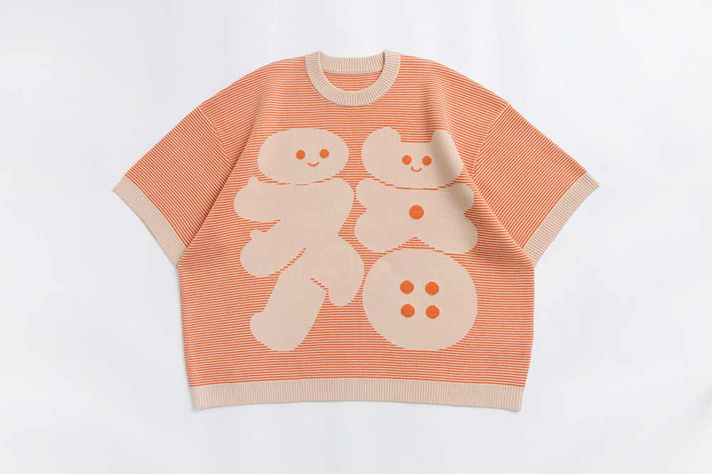 以美山有的「福」做主要圖案,再與橘、杏色細配條做底色,讓整件衣服更有層次感。