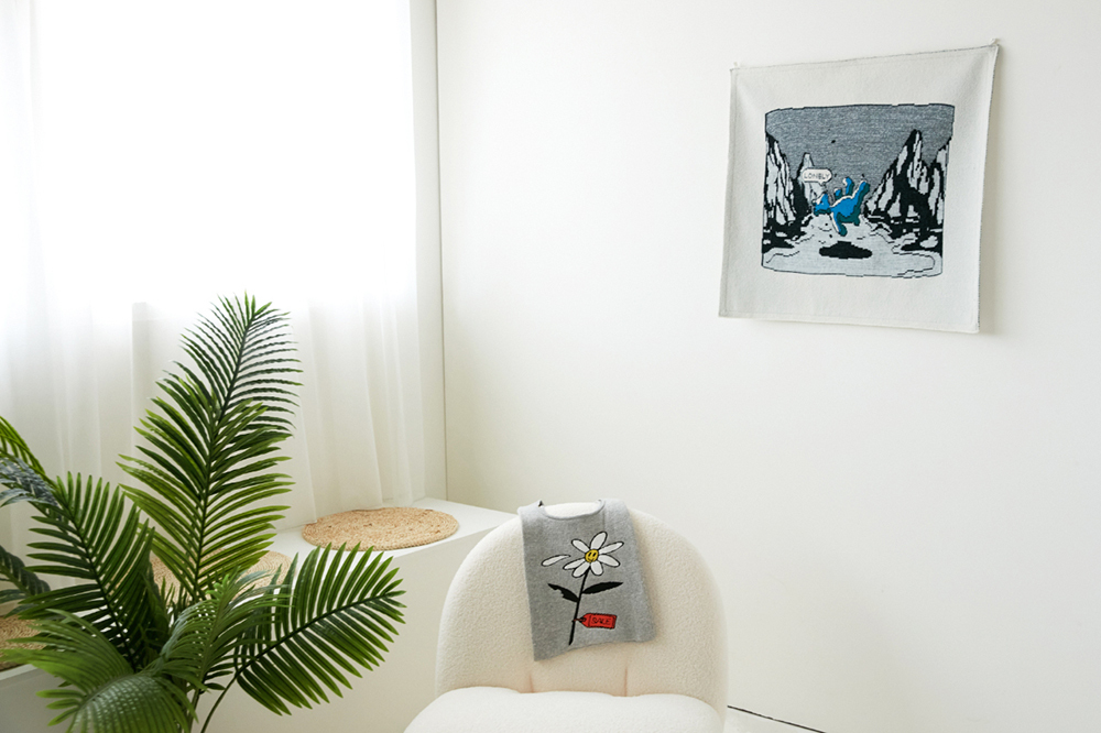 針織掛畫背面皆有貼襯,讓表面及邊緣皆平整漂亮,