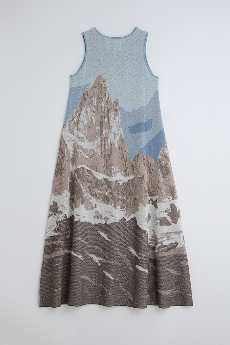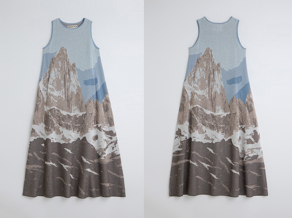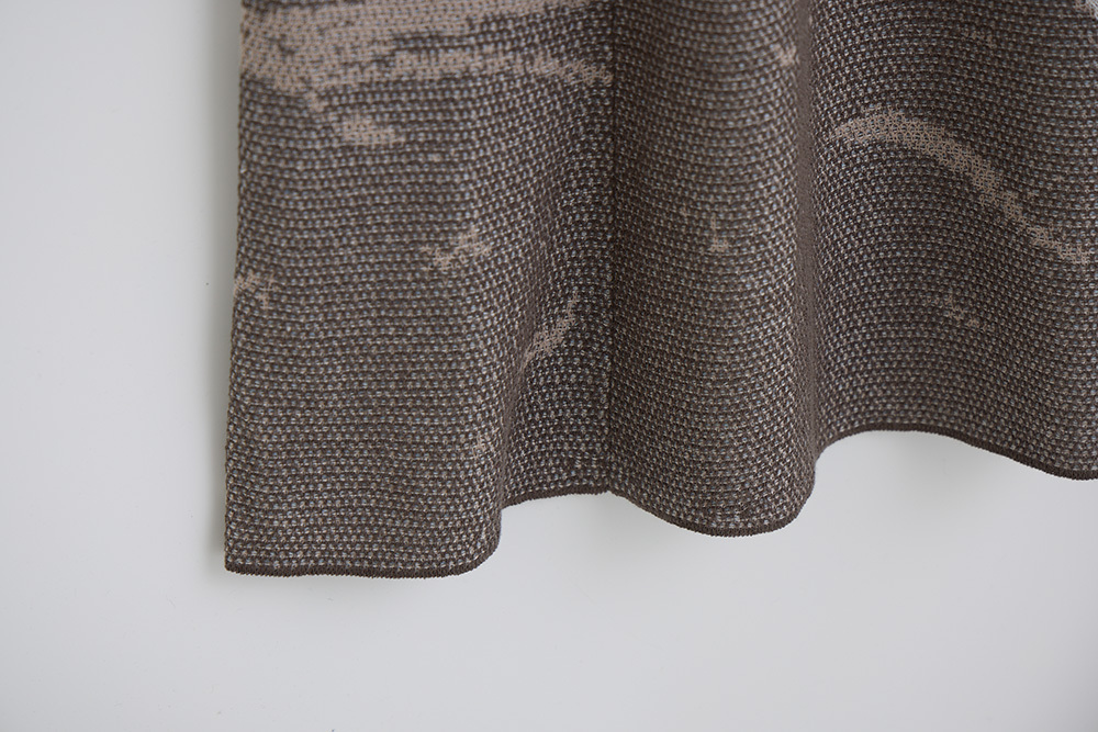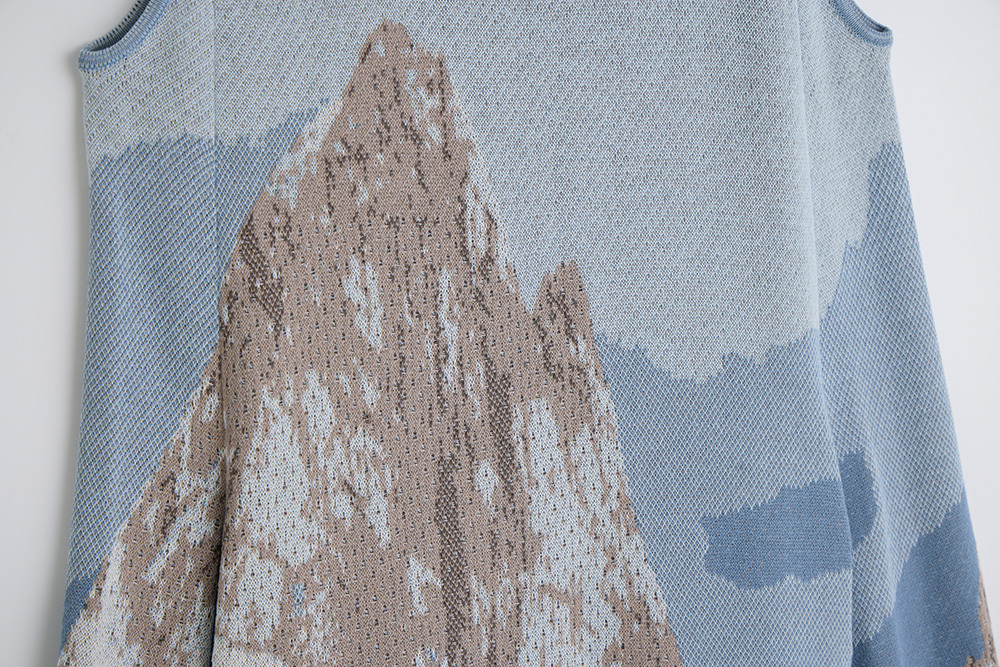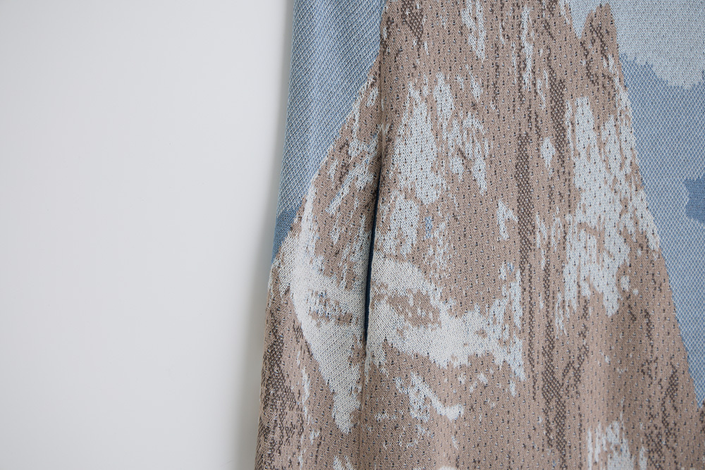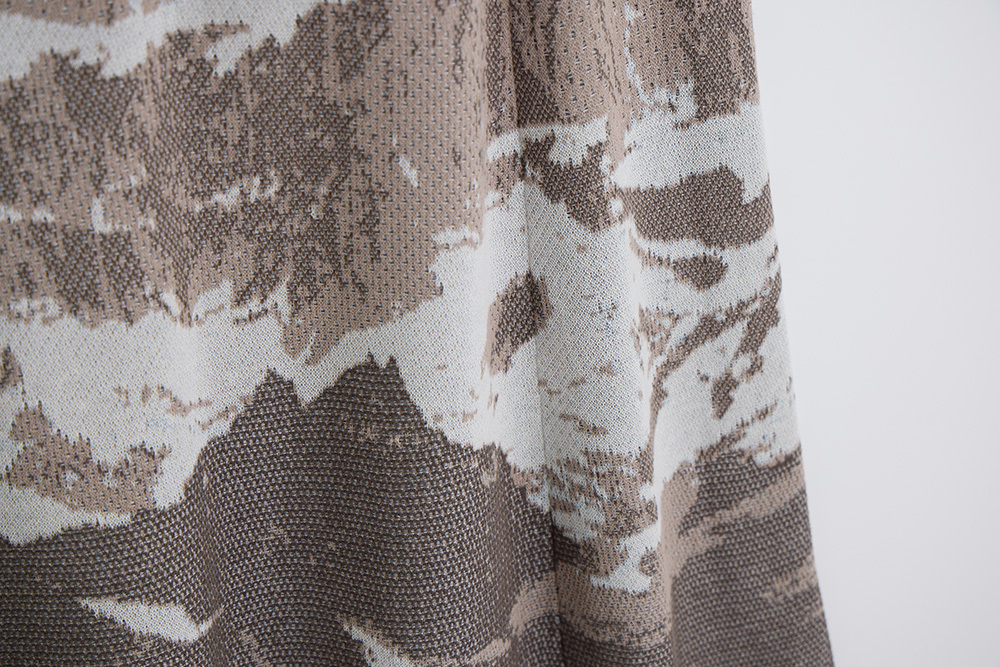 透過針織緹花加上組織變化呈現山脈的層次紋理。