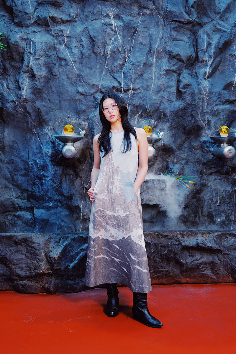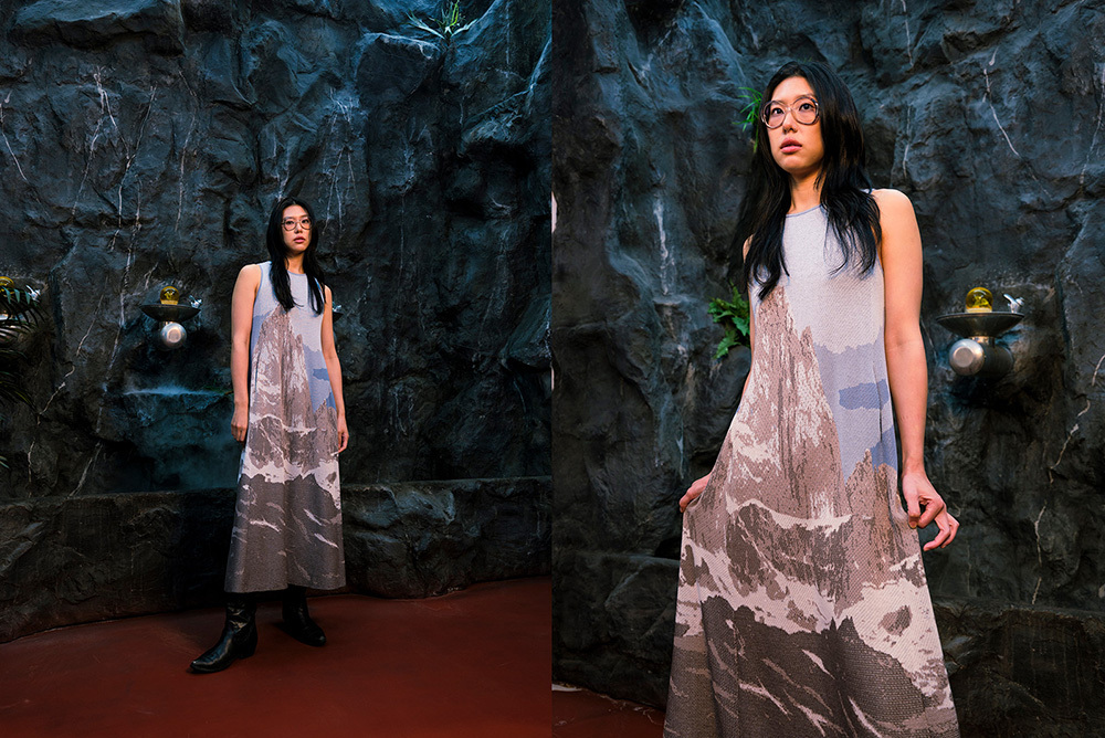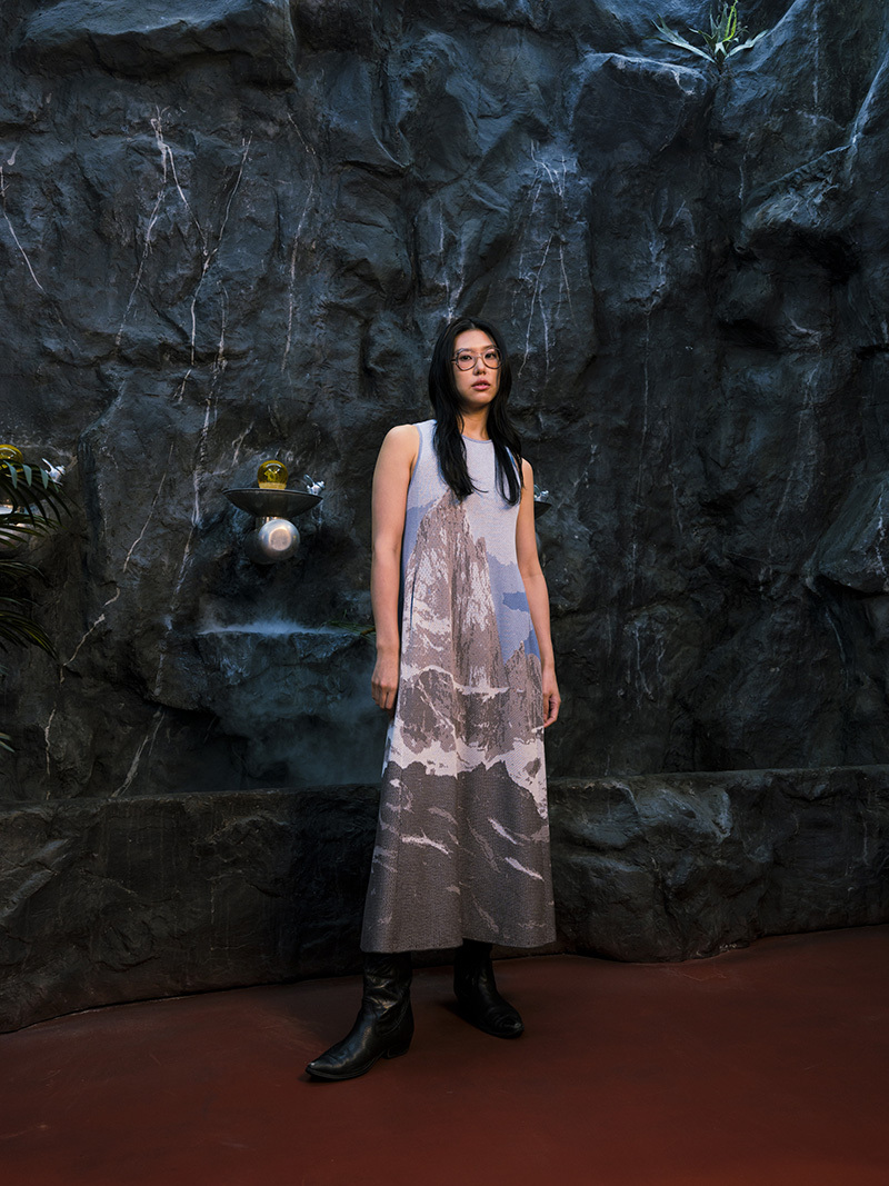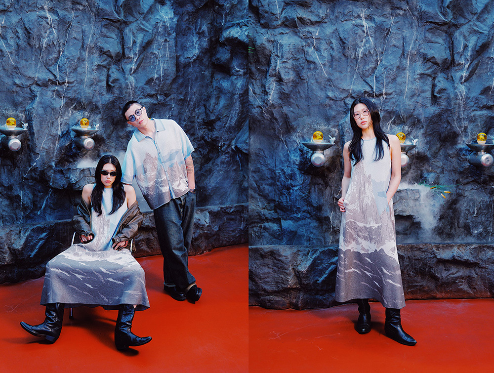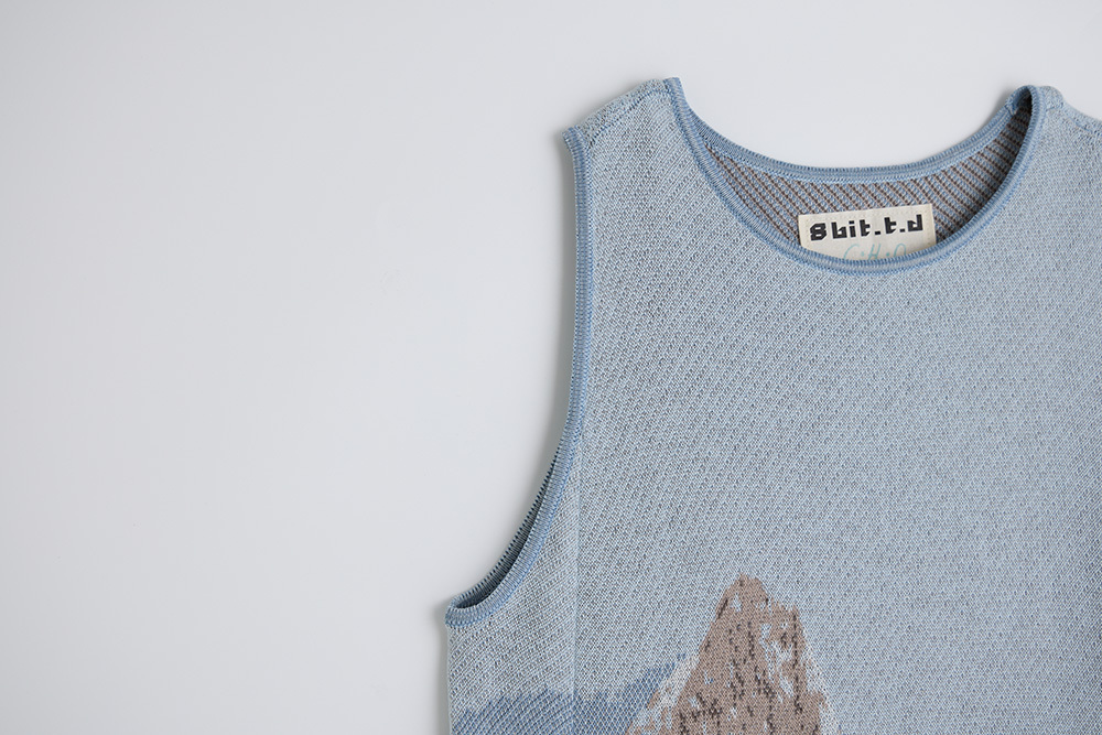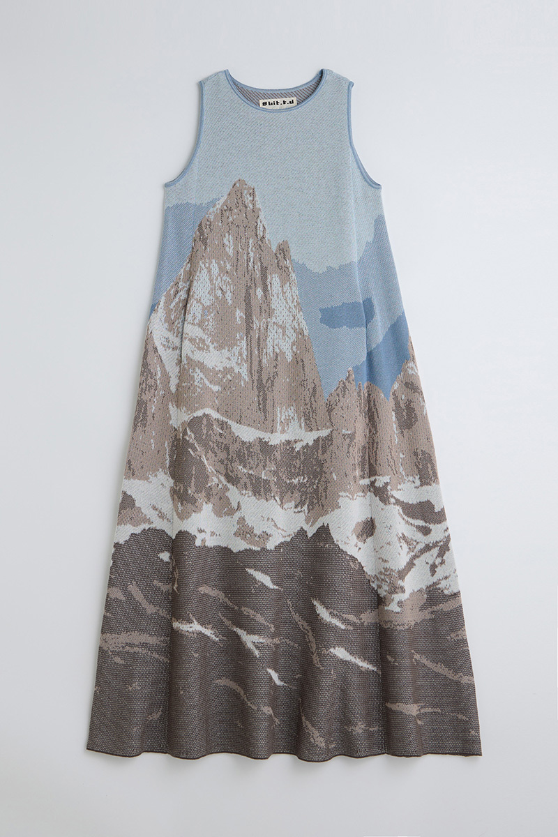 透過針織緹花加上組織變化呈現山脈的層次紋理。