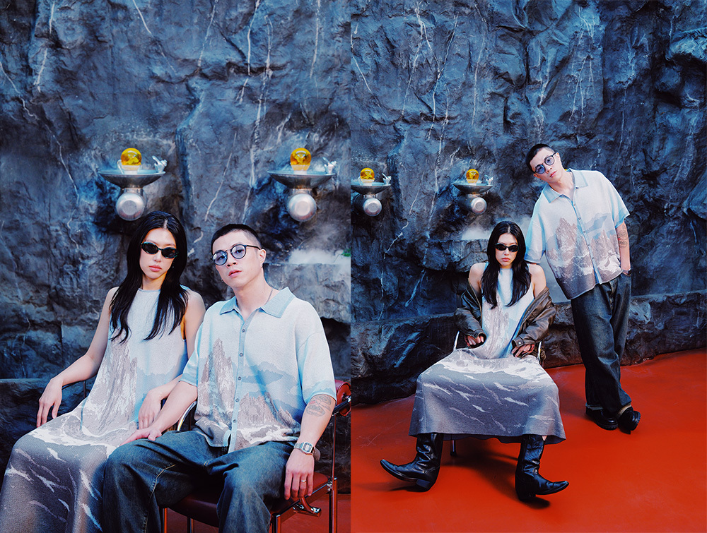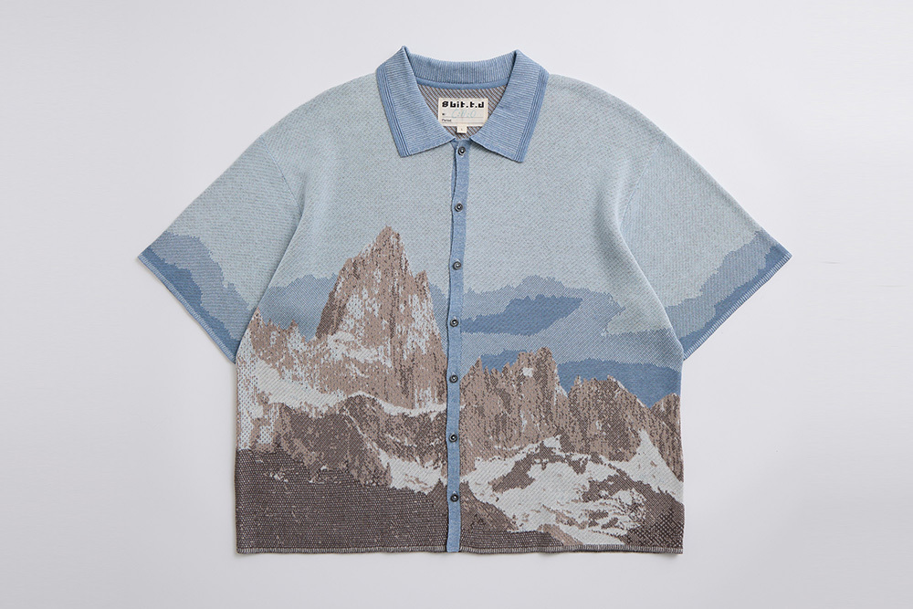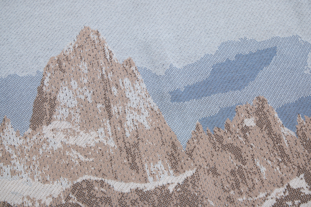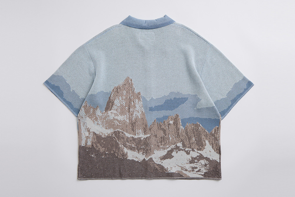 透過針織緹花加上組織變化呈現山脈的層次紋理。