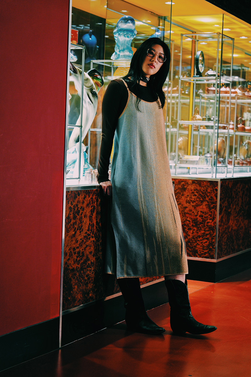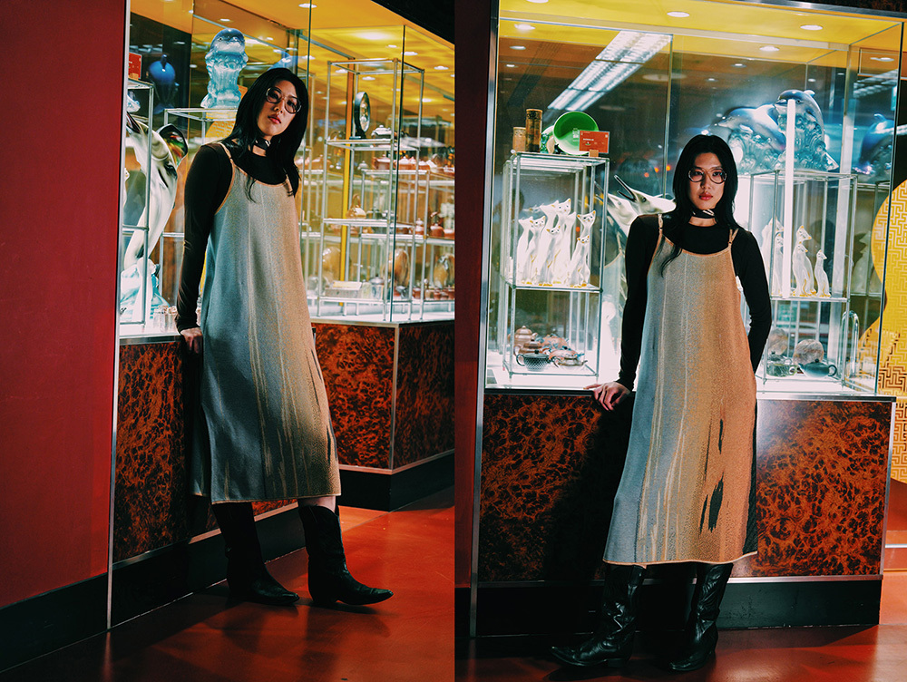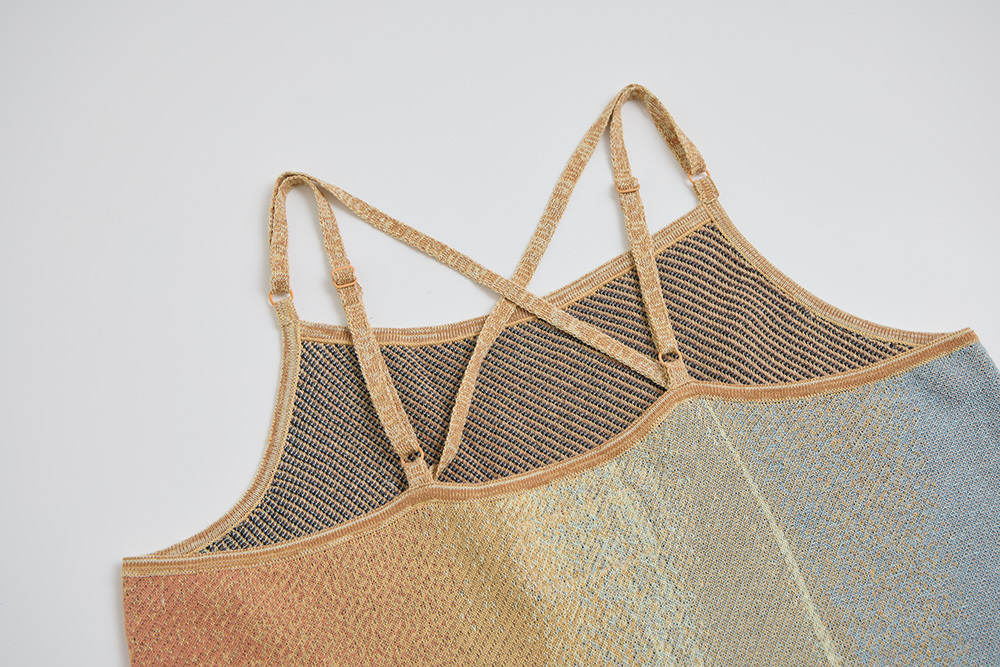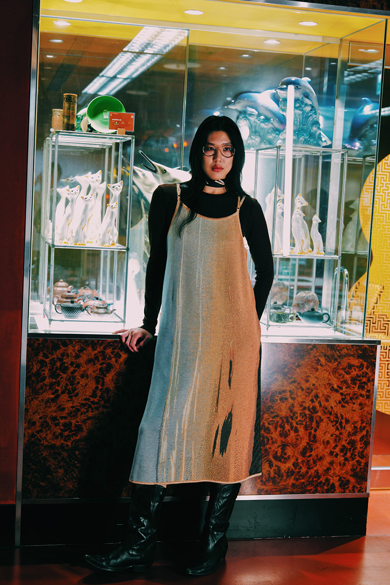 洋裝的肩帶有可調結的扣環,可依身高穿著習慣自由調整長度。